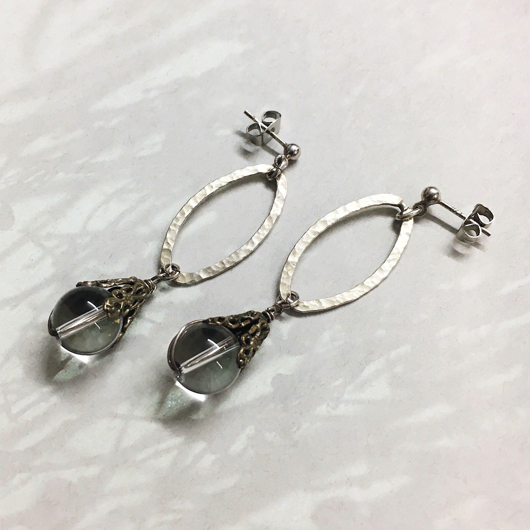 -Sterling silver hand hammered hoop with vintage crystal cover which also made of silver.