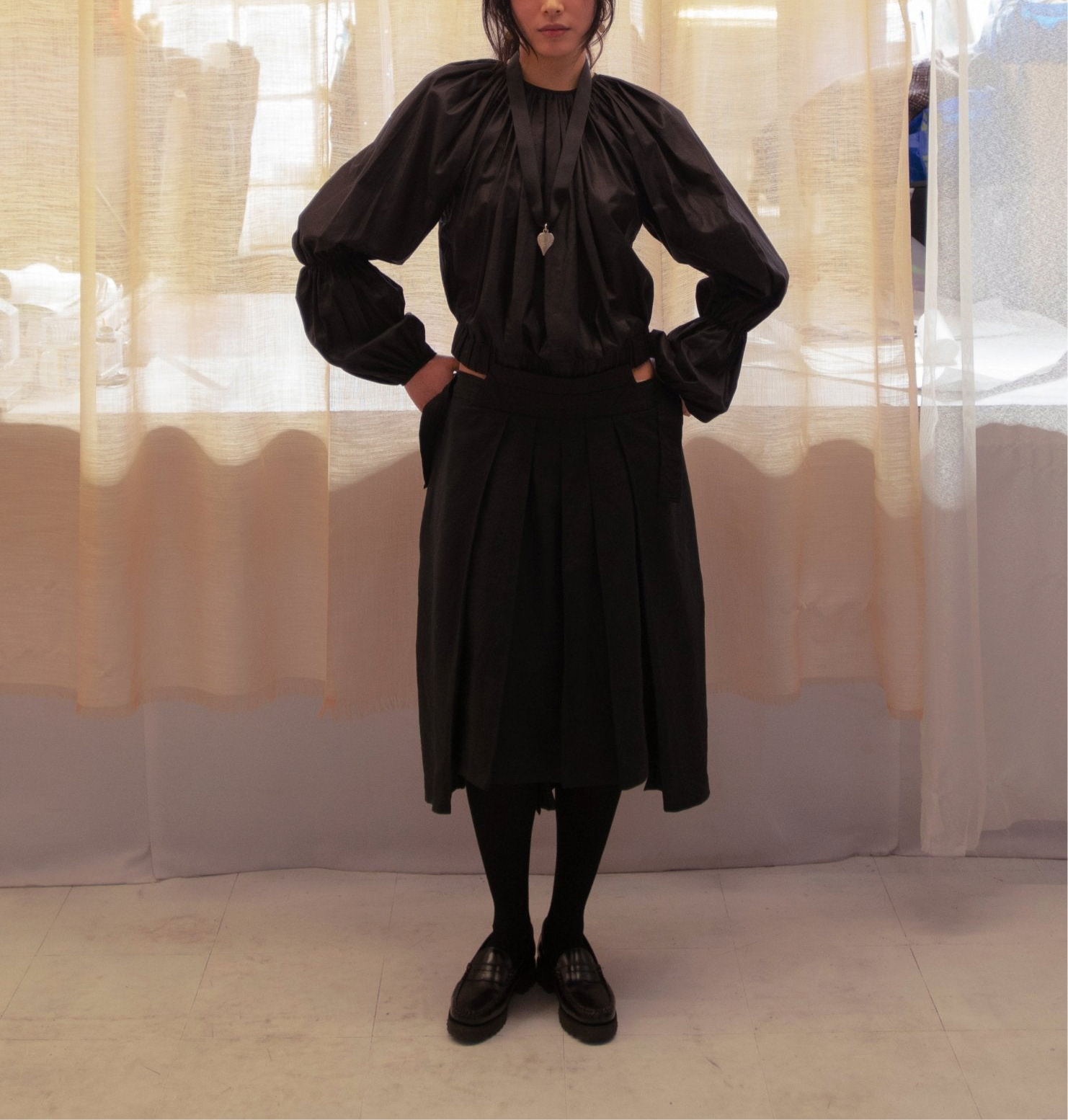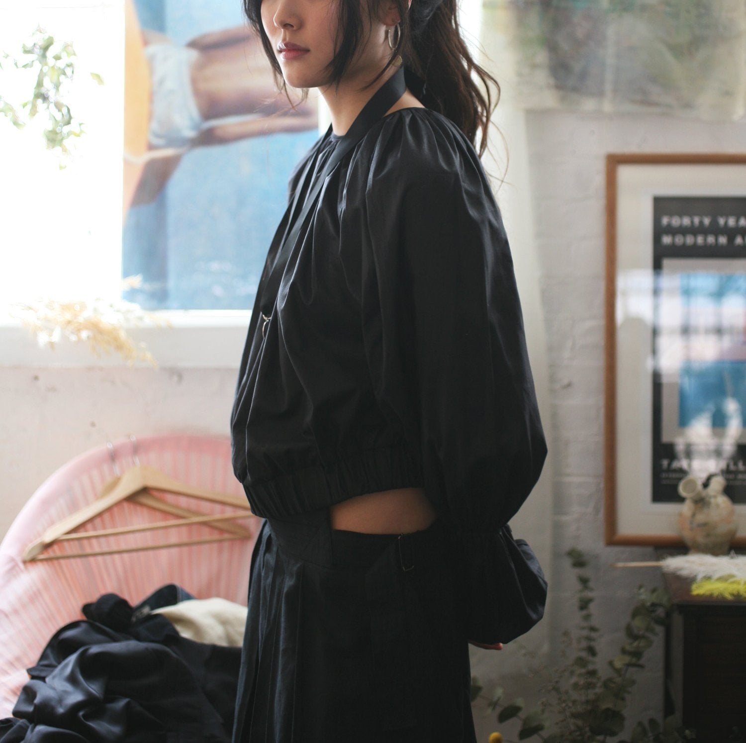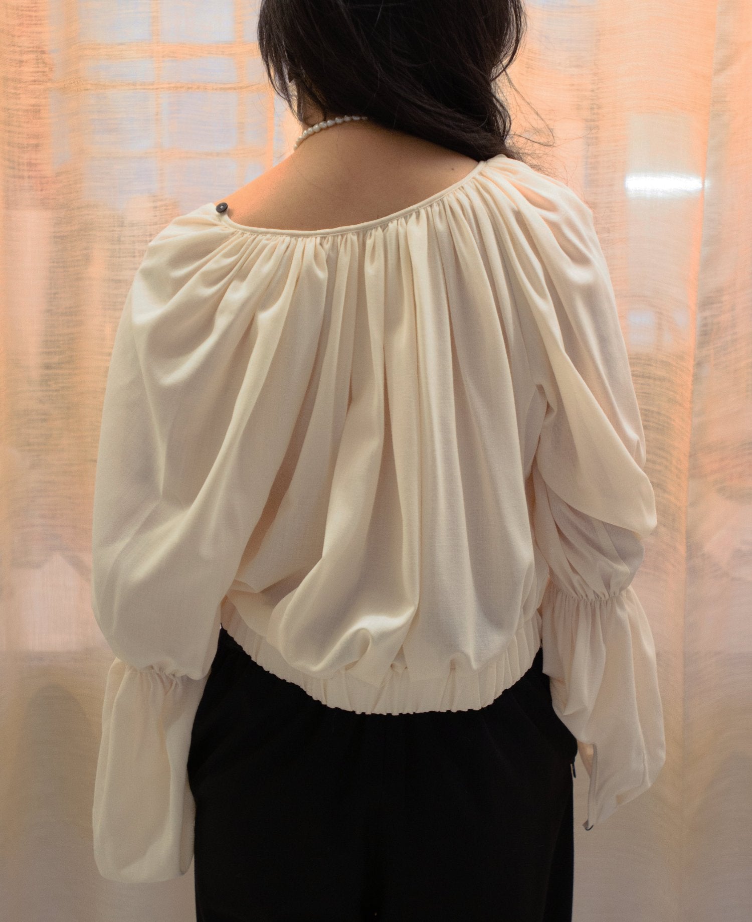 Introducing the Balloon Jumper. Cropped cut with wide voluminous sleeves. Made with high-quality materials, this jumper is perfect for any occasion. It has a unique design and a comfortable fit.