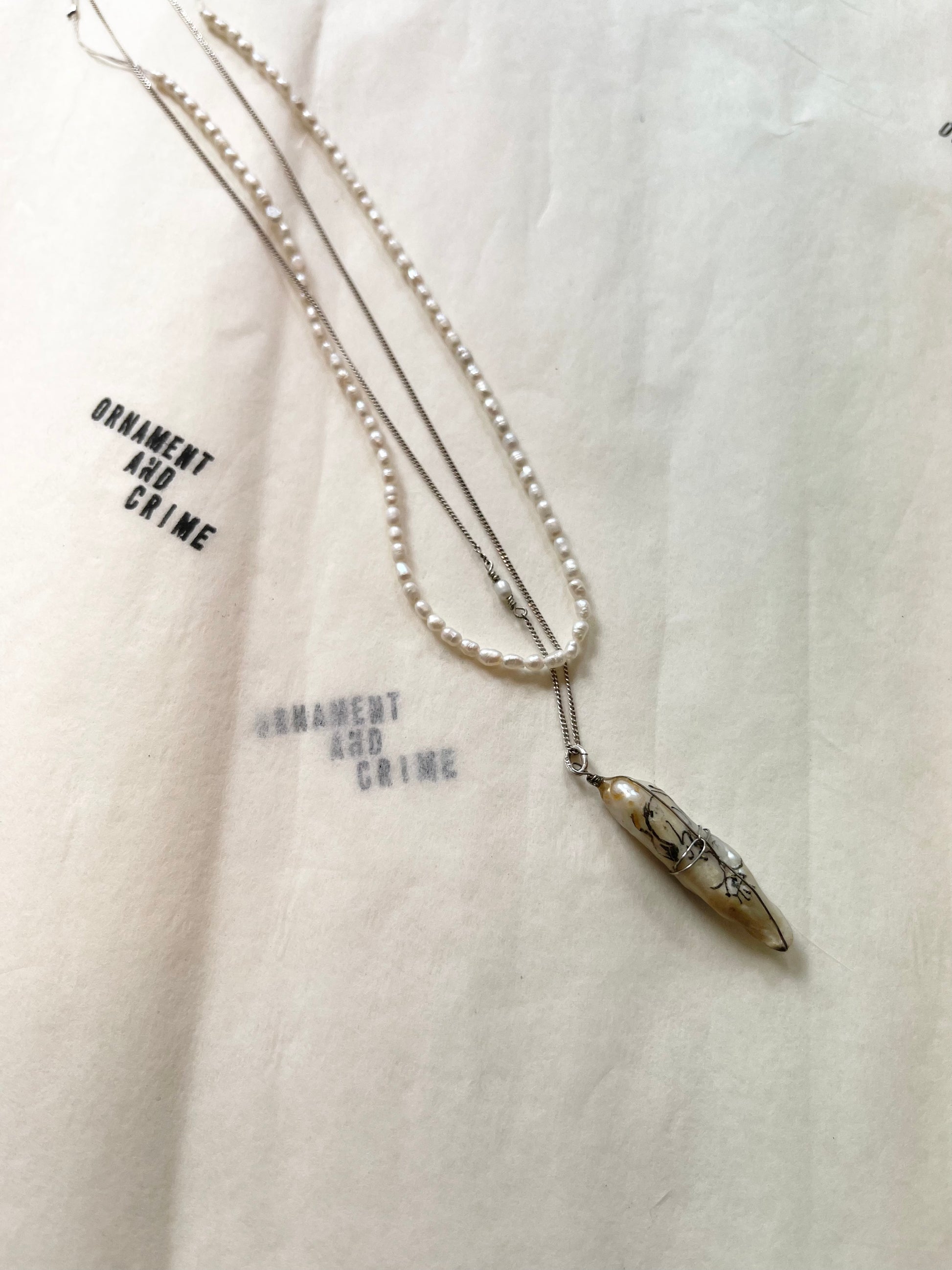 Diamond cut sterling silver chain with fresh water pearl chain.