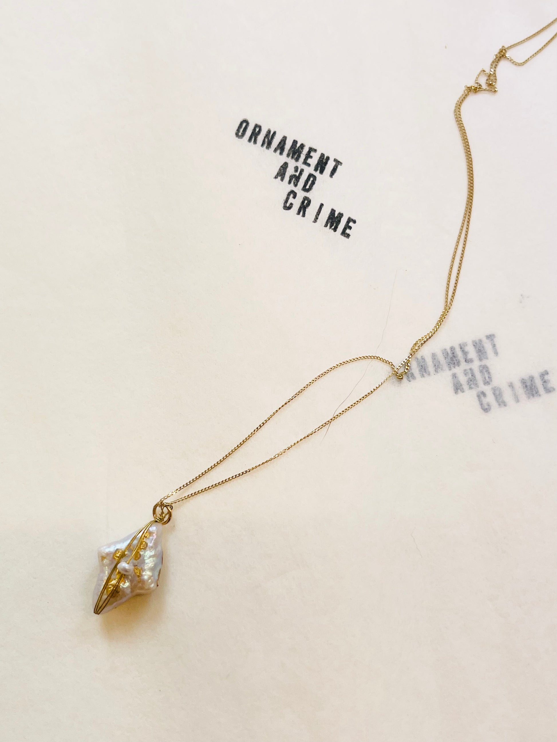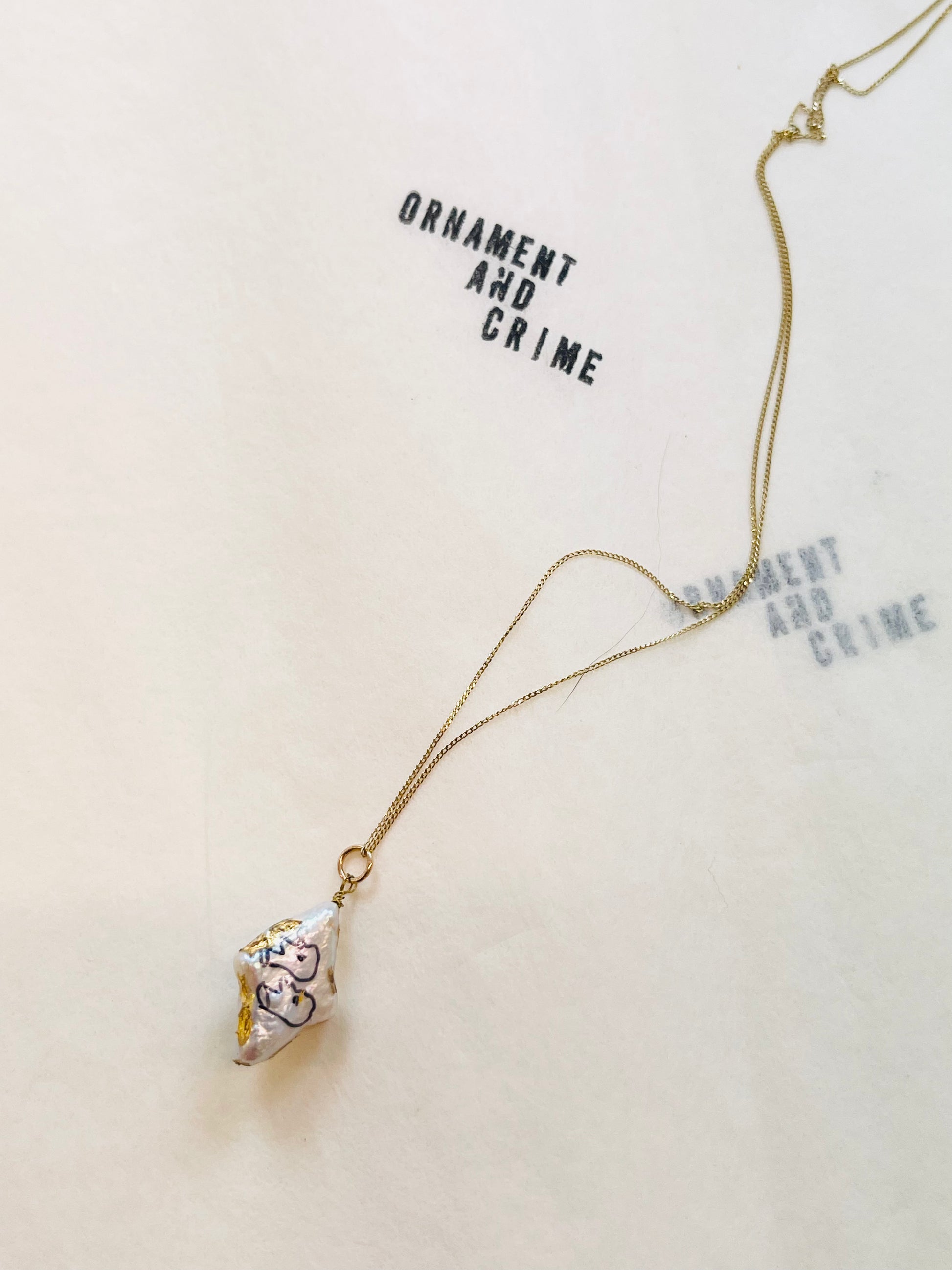 Diamond shape fresh water pearl with hand drawing , genuine gold leaf crafted.