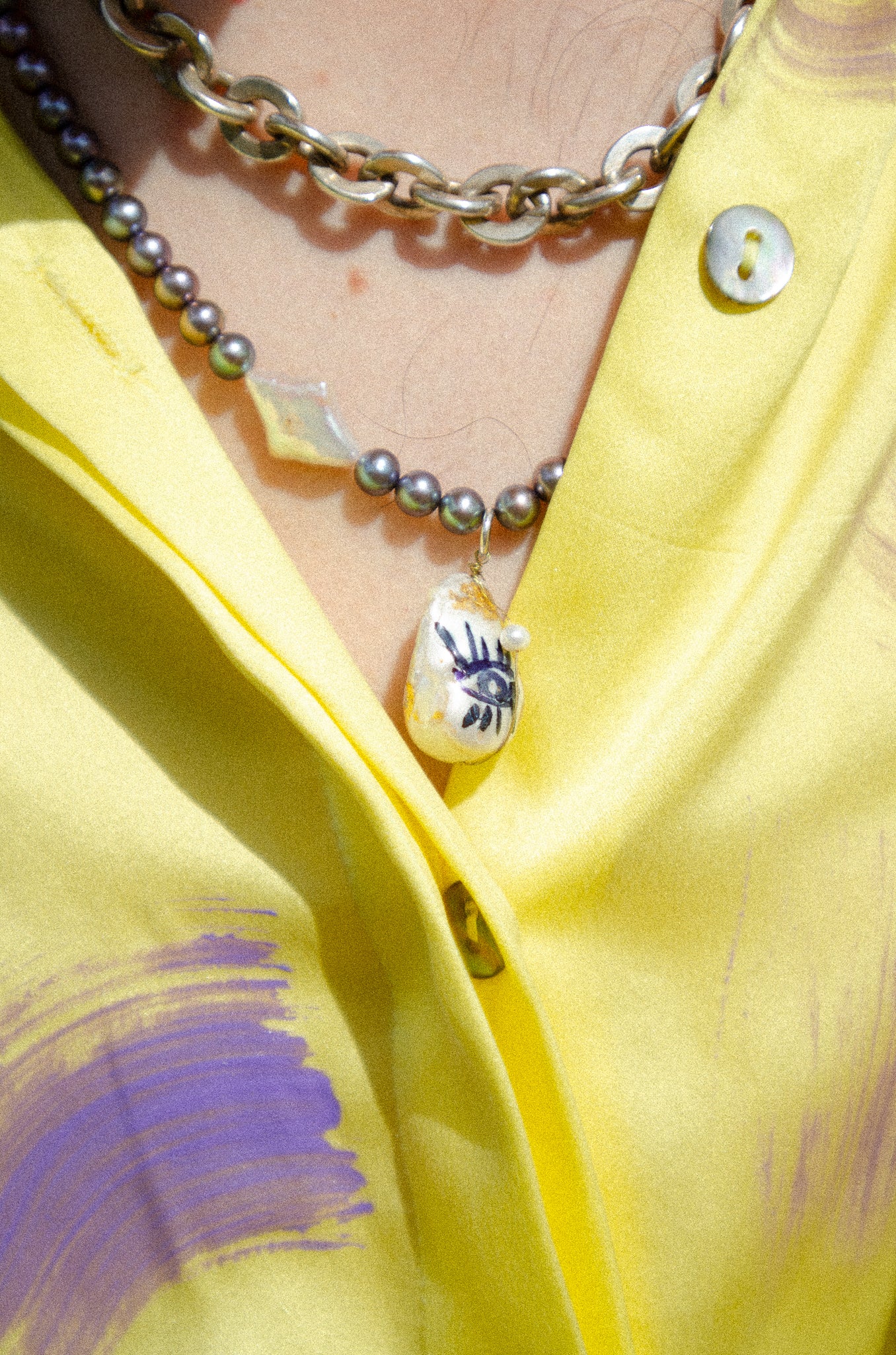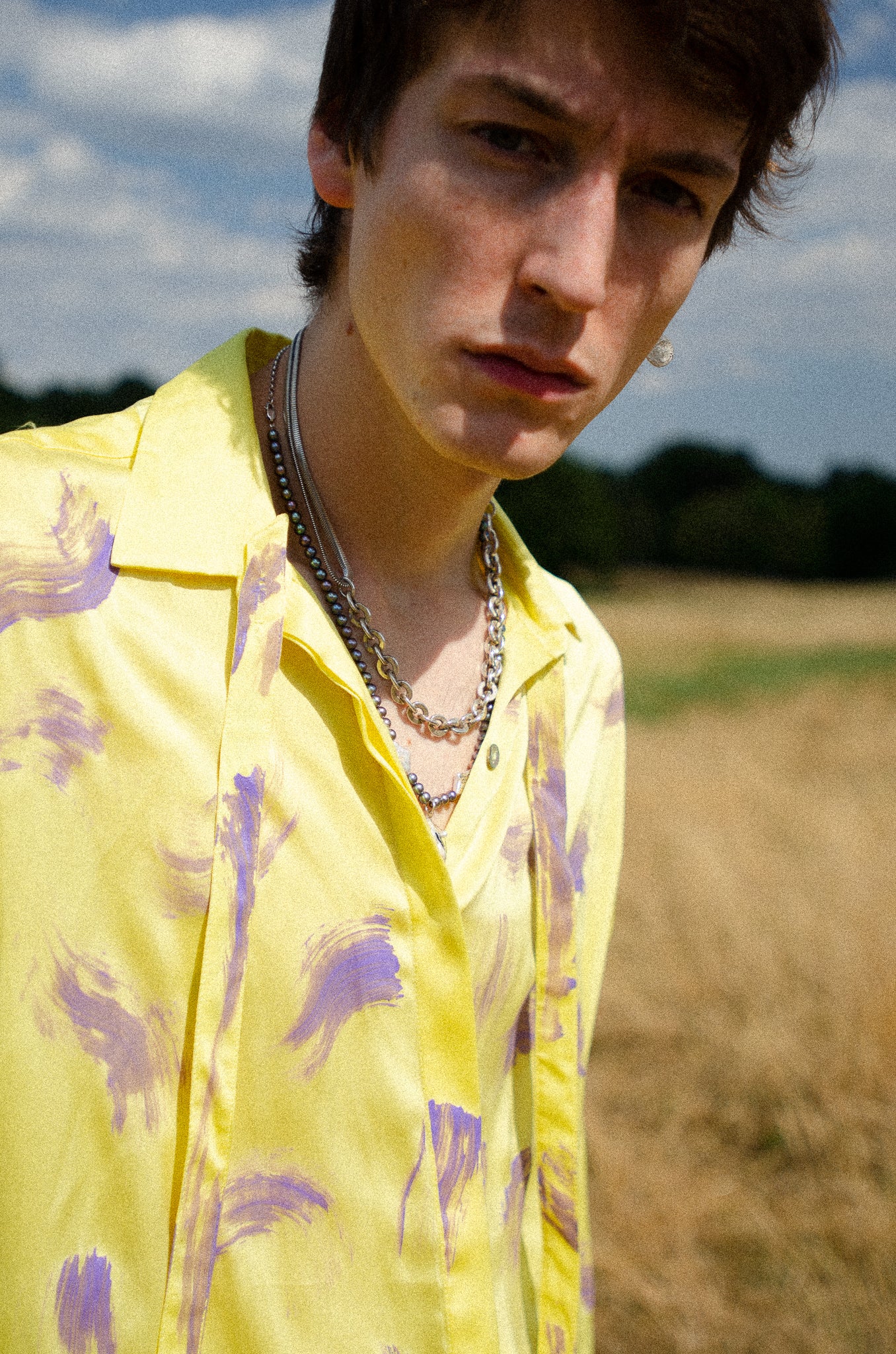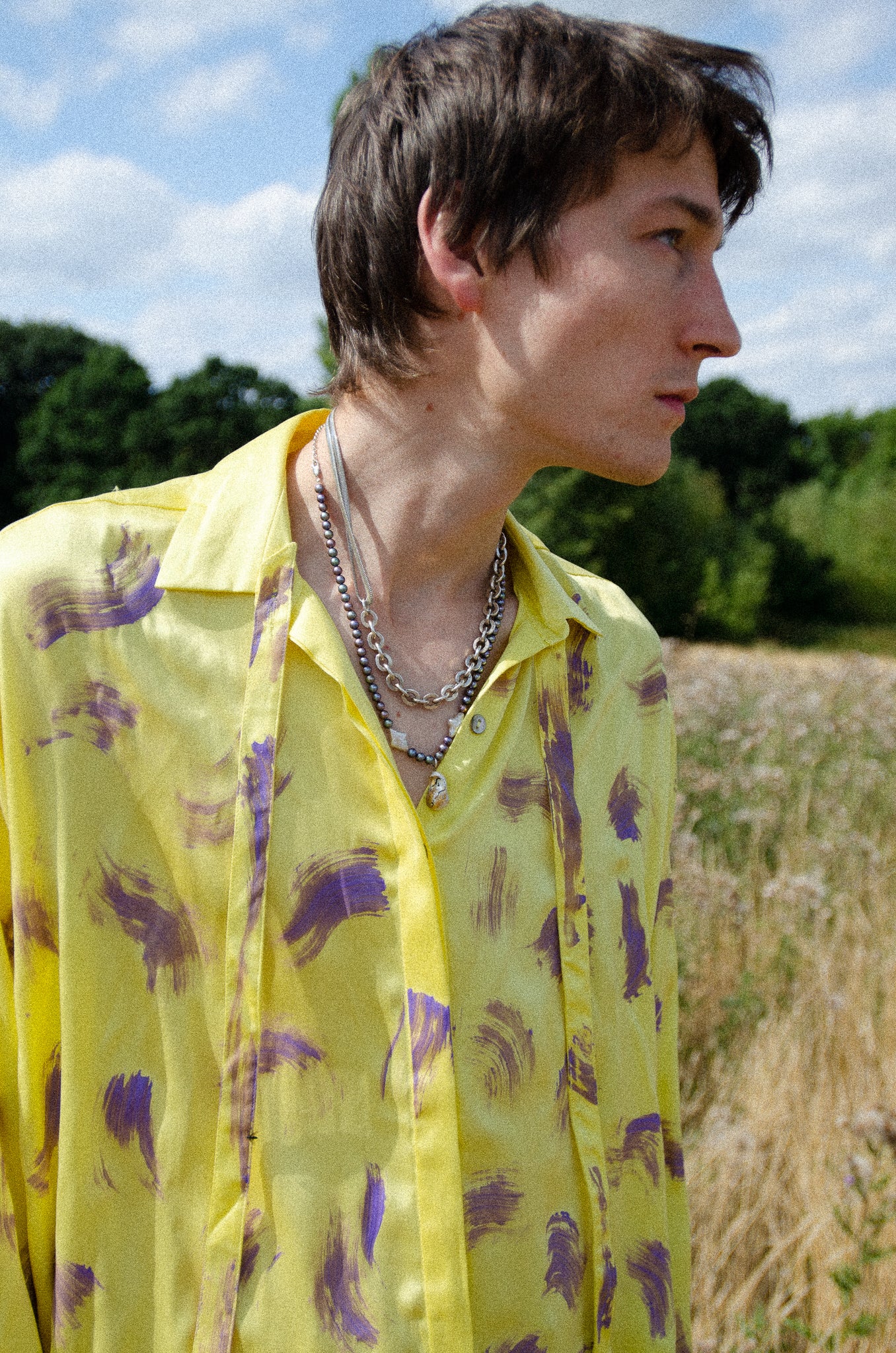 HAND PAINTED Boyfriend Silk Shirt (Lilac Flame)