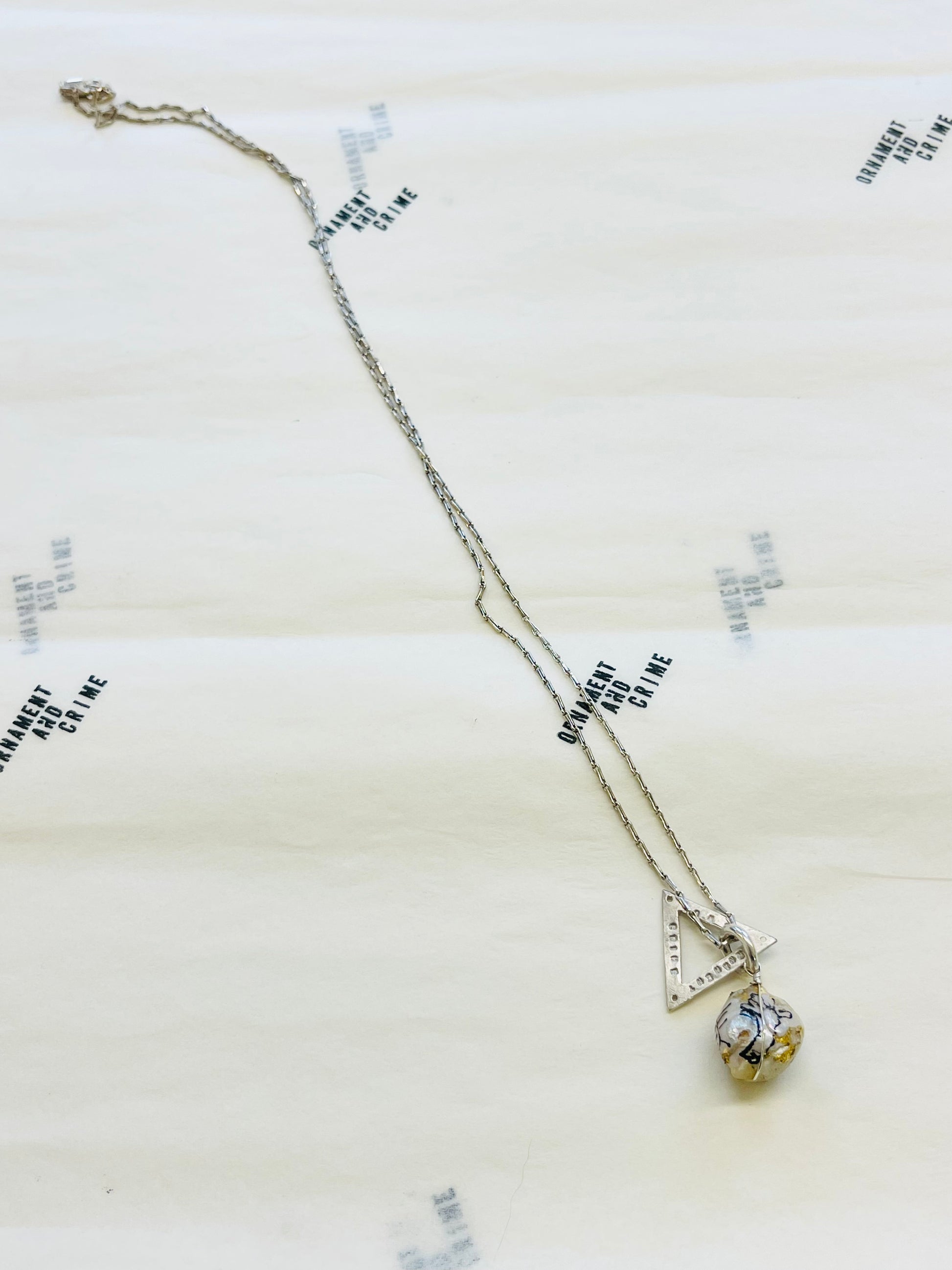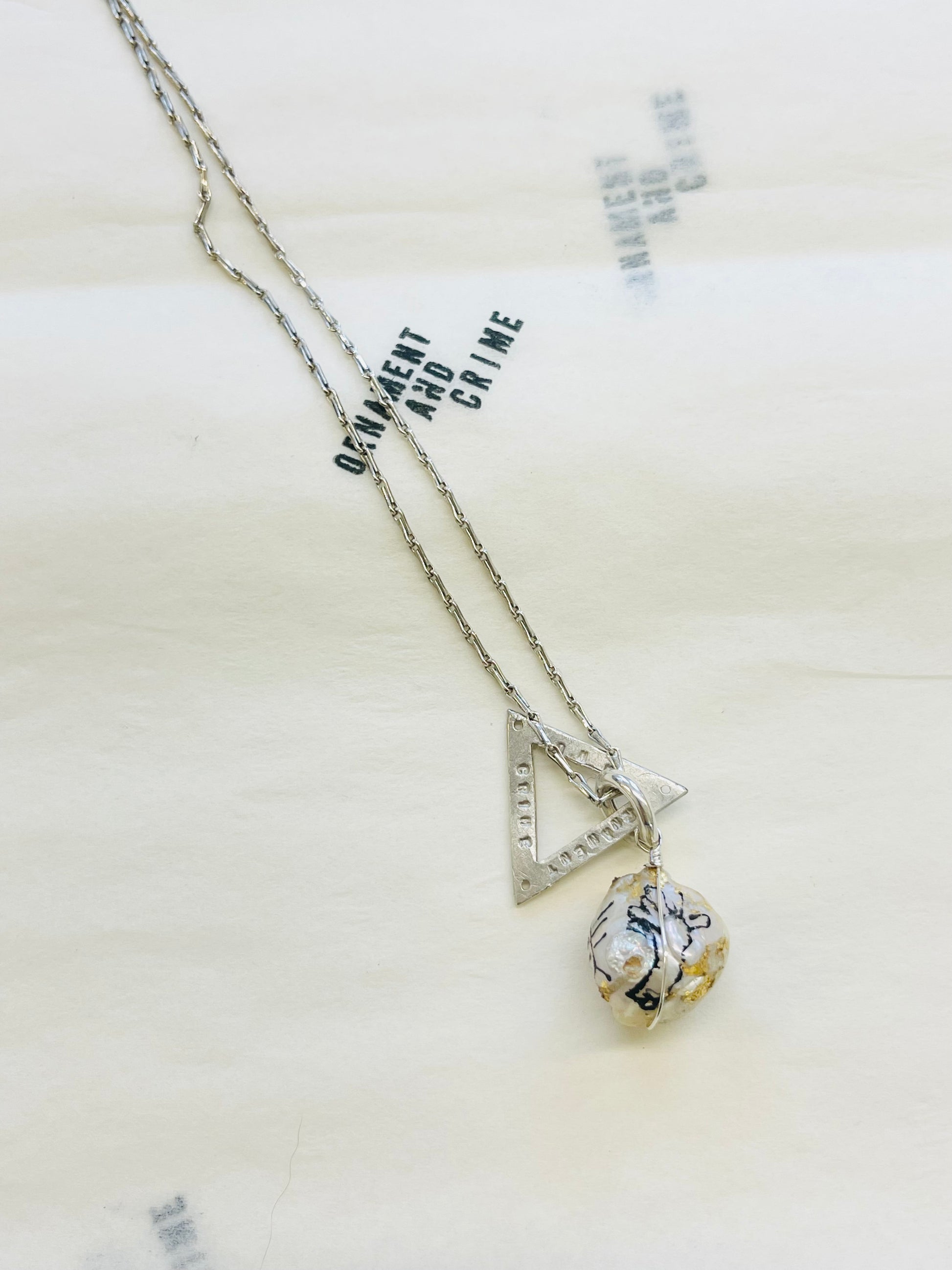This necklace is designed with Triangle shape of charm which engraved with ornament & crime logo.