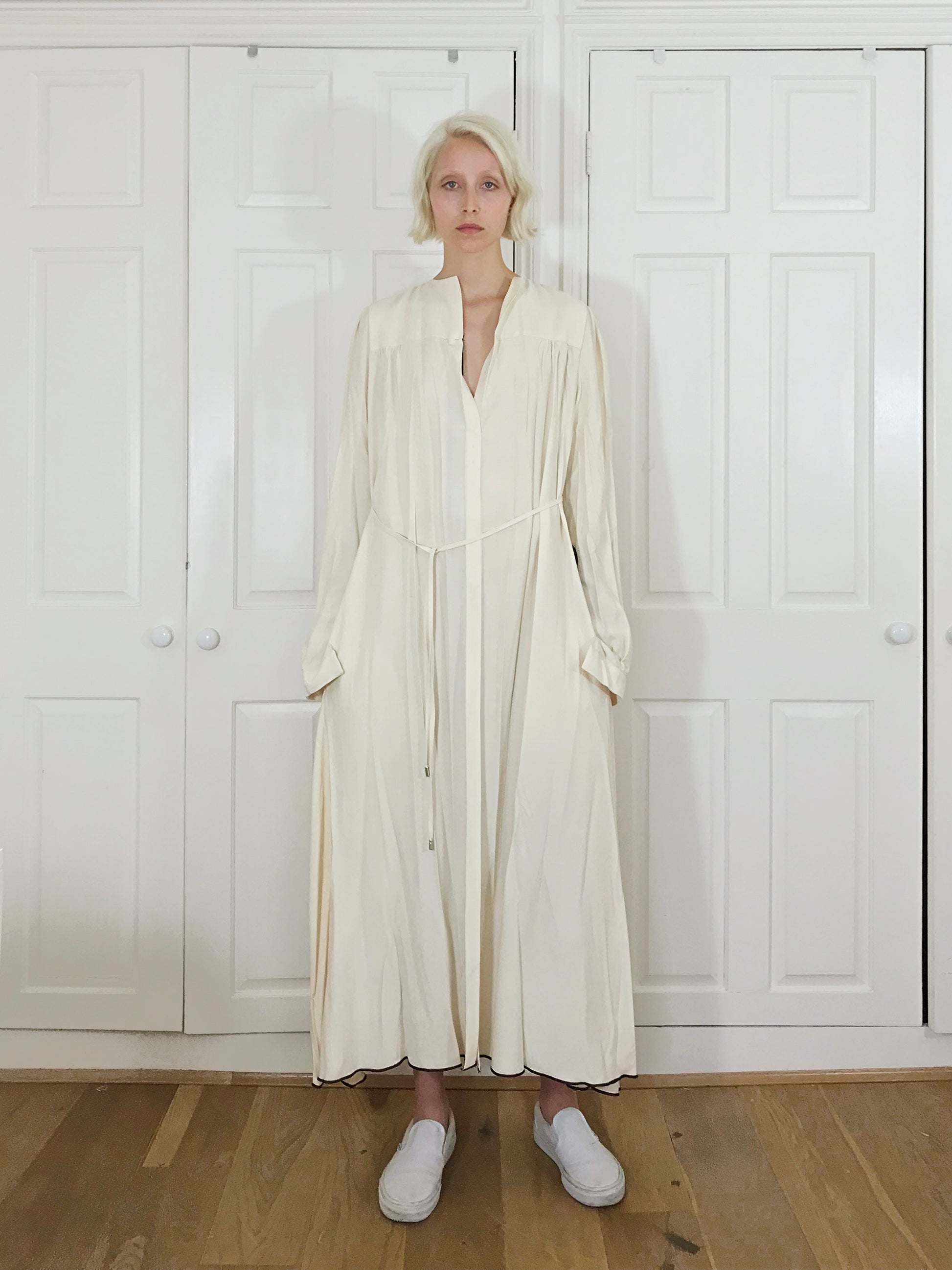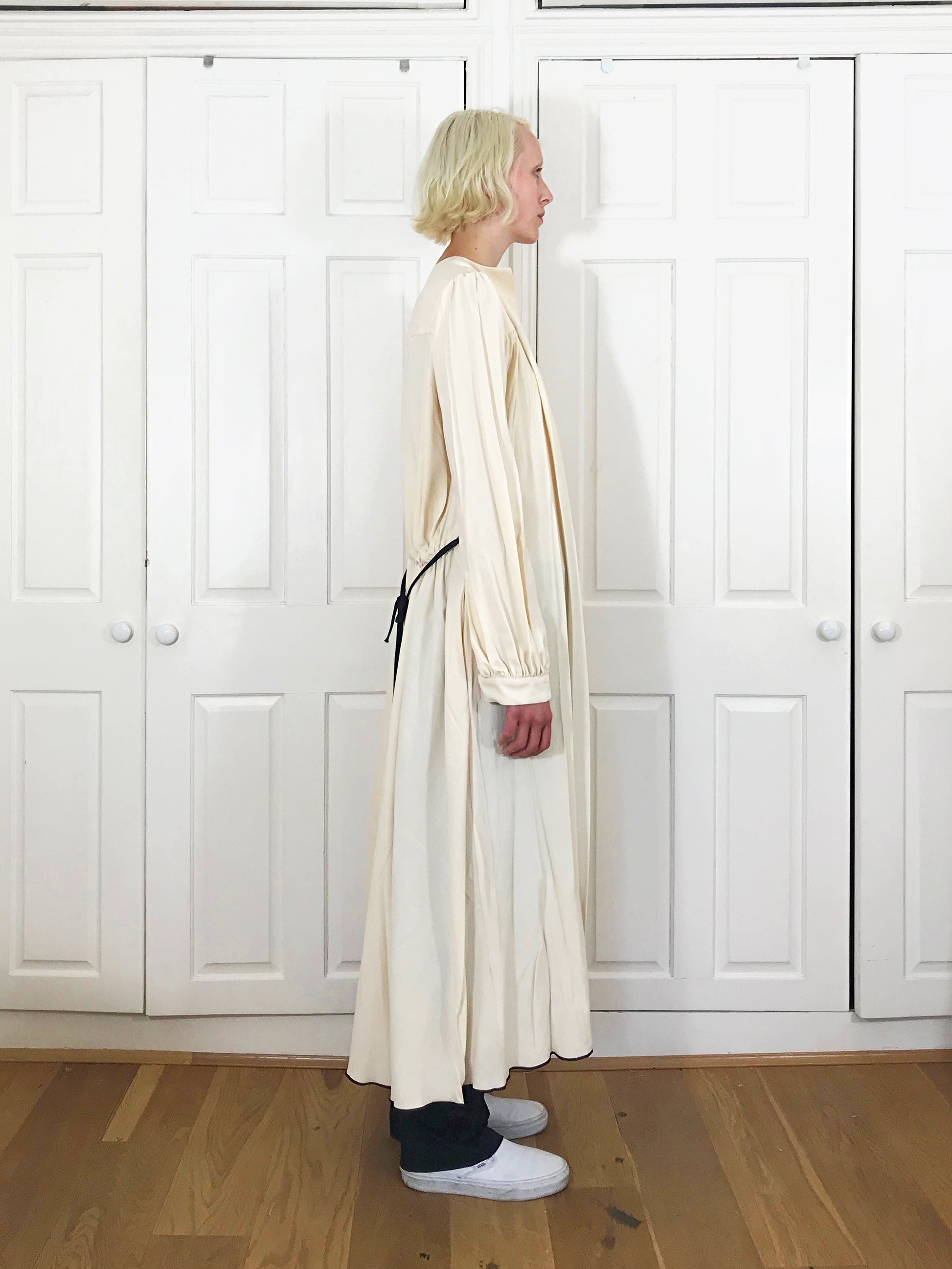 This dress can be worn as an overshirt with a pair of trousers or as a staple dress for when you feel like going out on the go. It features two different coloured string detail so you can cinch your waist at the back or at the front.