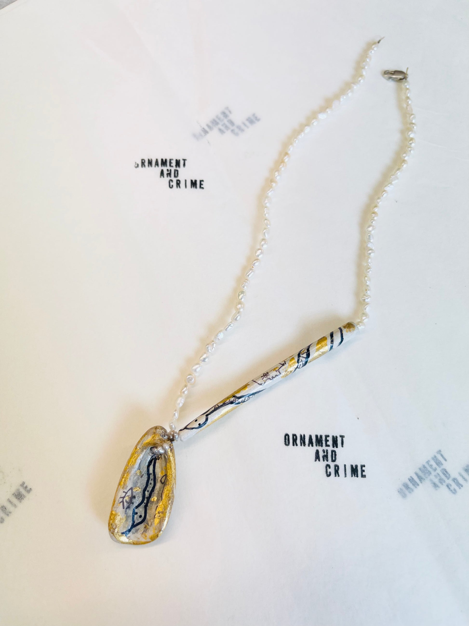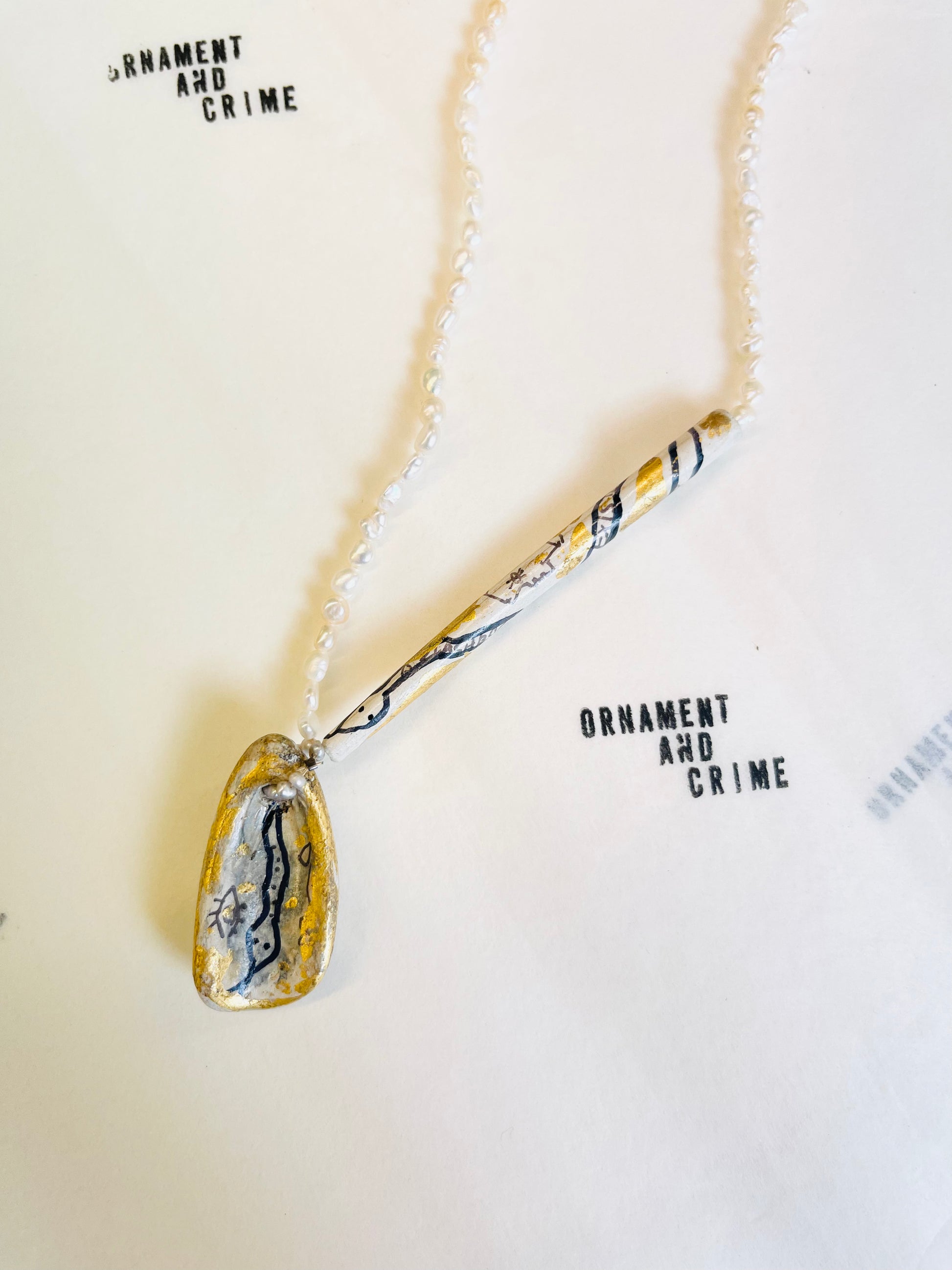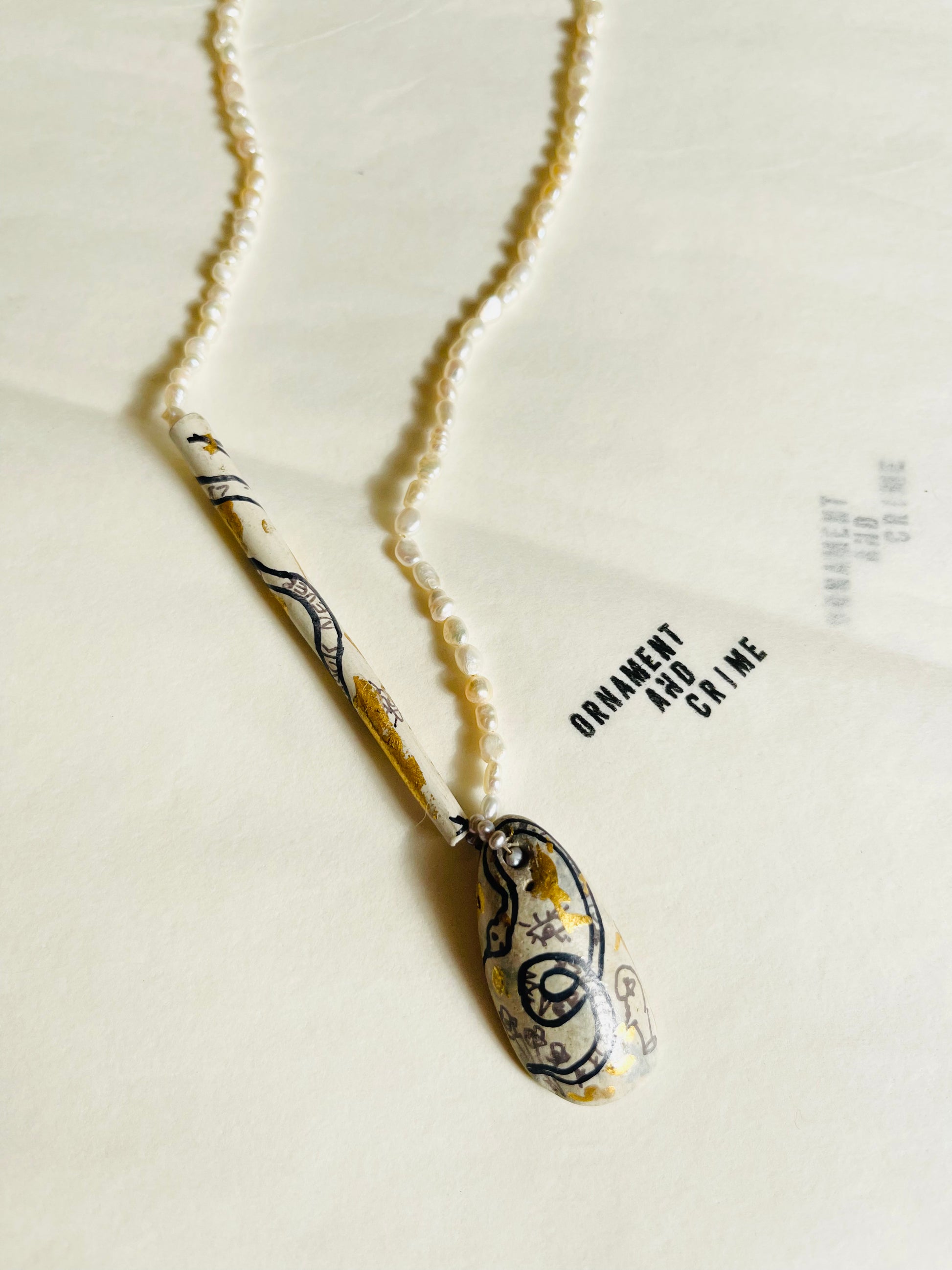 Baroque pearl with hand drawing with genuine gold leaf crafted.