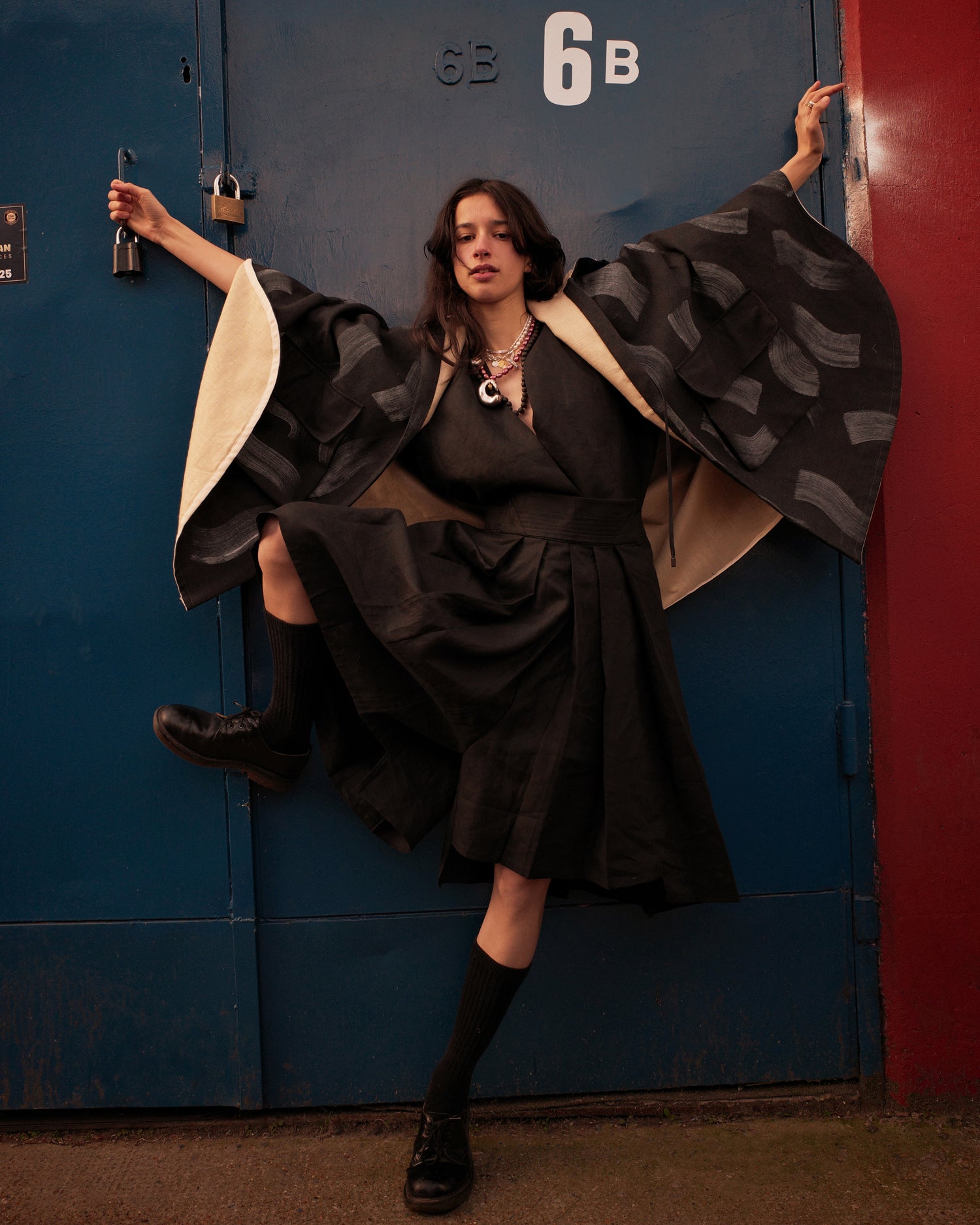 Whether you're strolling through enchanted forests or navigating the urban jungle, our Reversible Magic Poncho is a statement piece that captures the essence of imagination and style. Elevate your wardrobe with the artistry of hand-painted details and the luxurious comfort of Irish Linen, creating a look that's truly one-of-a-kind.