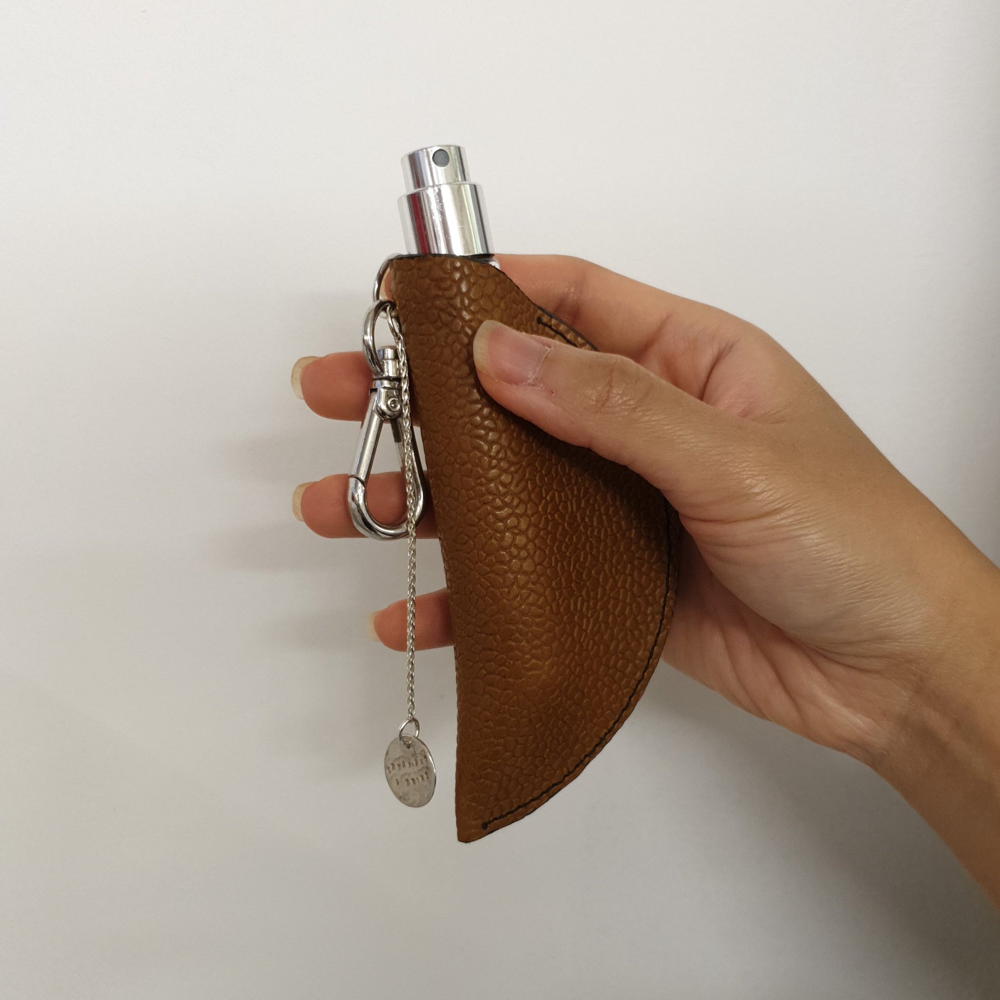 This is a unique leather perfume case holder designed to carry your favourite scent wherever you go. So there is no excuse to not bring your perfume with you. It features a clasp where you can attach it onto you belt or bag.