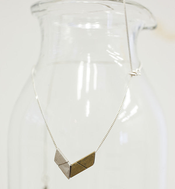 This is a handmade silver and bronze charm necklace. A subtle yet elegant piece of jewellery perfect as a layering piece or worn by itself.