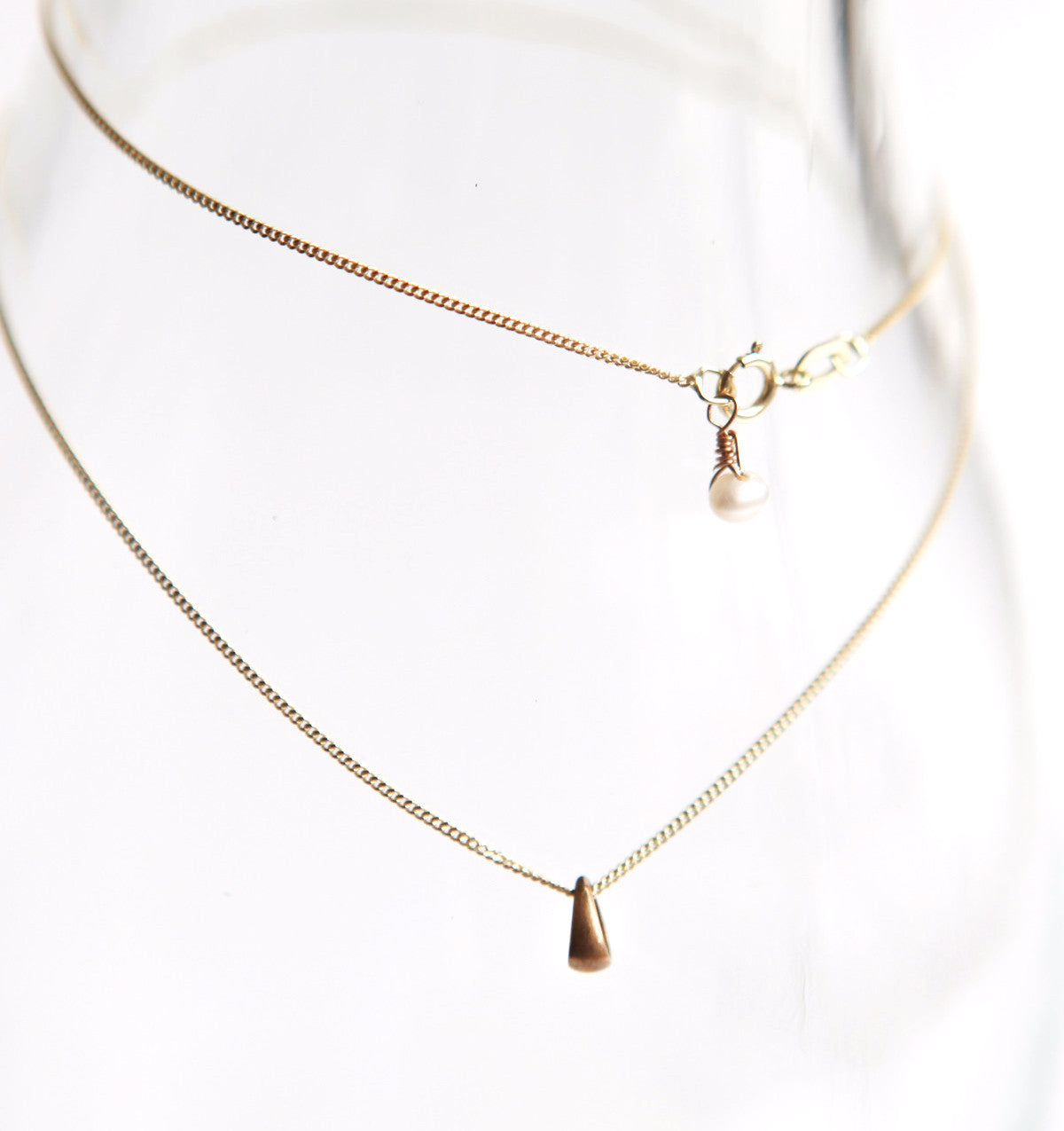 This handmade brass charm features a delicate gold chain. It comes with a pearl detail at the clasp. A perfect piece of jewellery for your loved one who pays attention to detail.