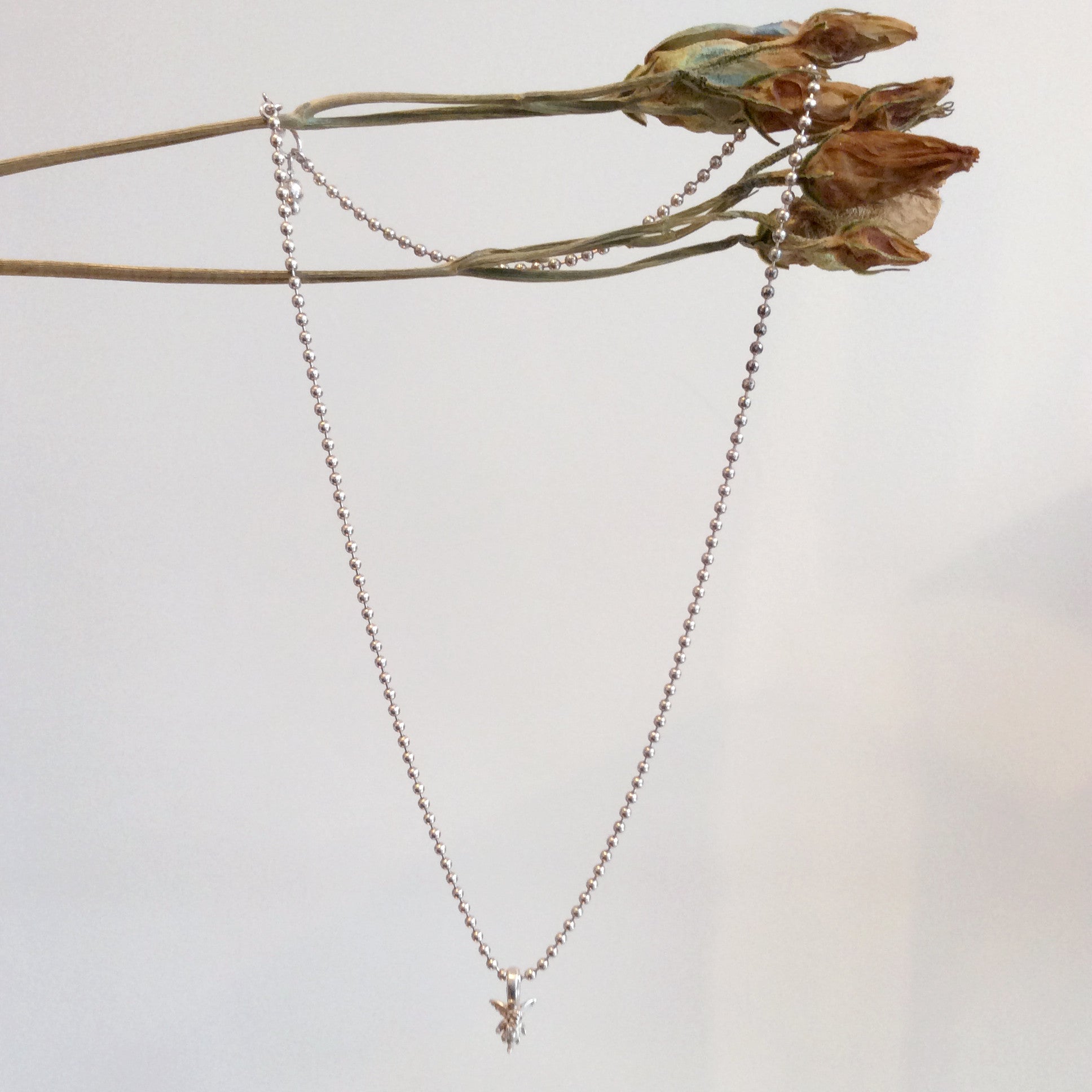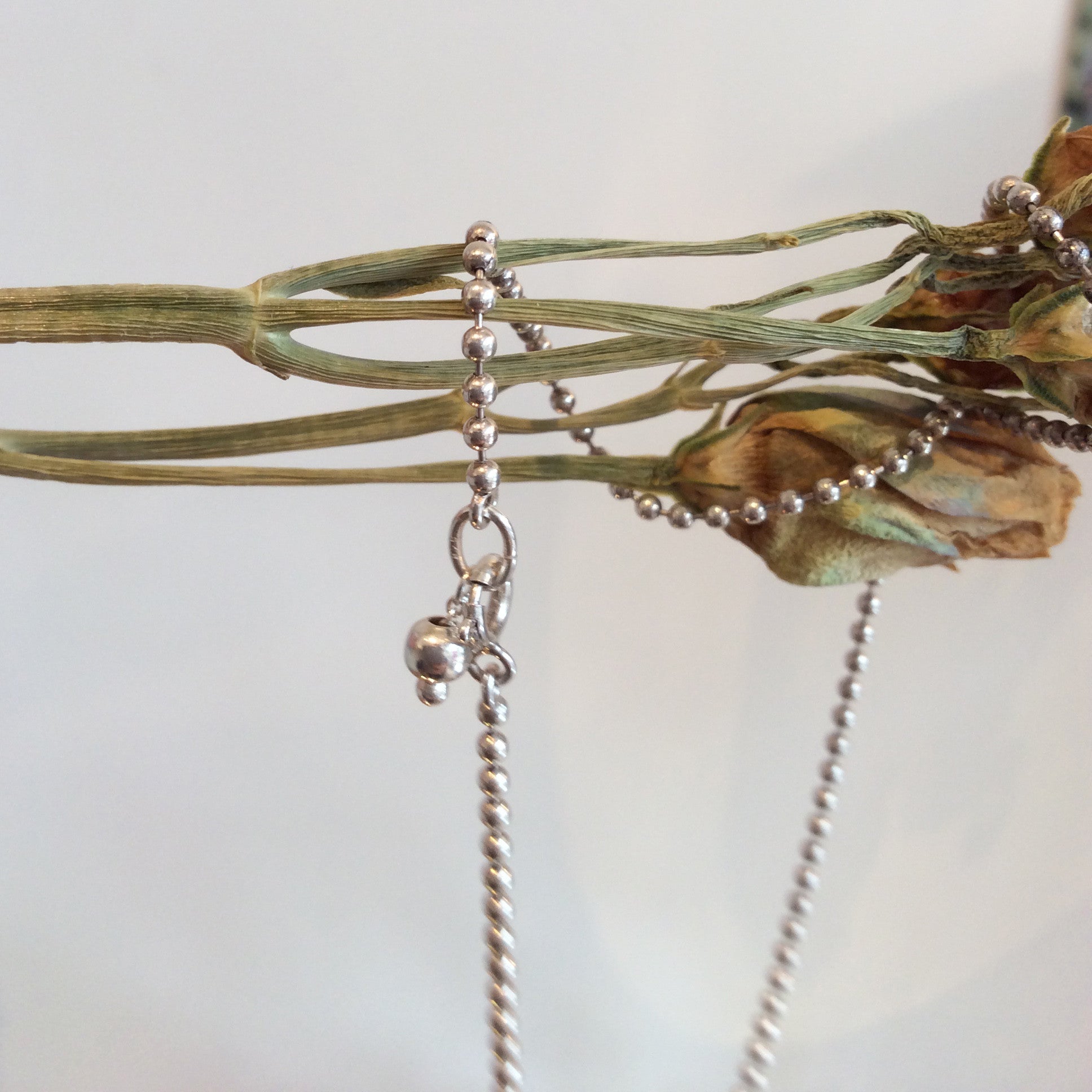 Beautiful handcrafted necklace with a unique beaded silver chain and a small sterling silver Angel pendant. An understated, one of a kind piece which can be worn by itself as a statement piece. It can also be worn or as a layered look alongside our selection of gold and silver necklaces.