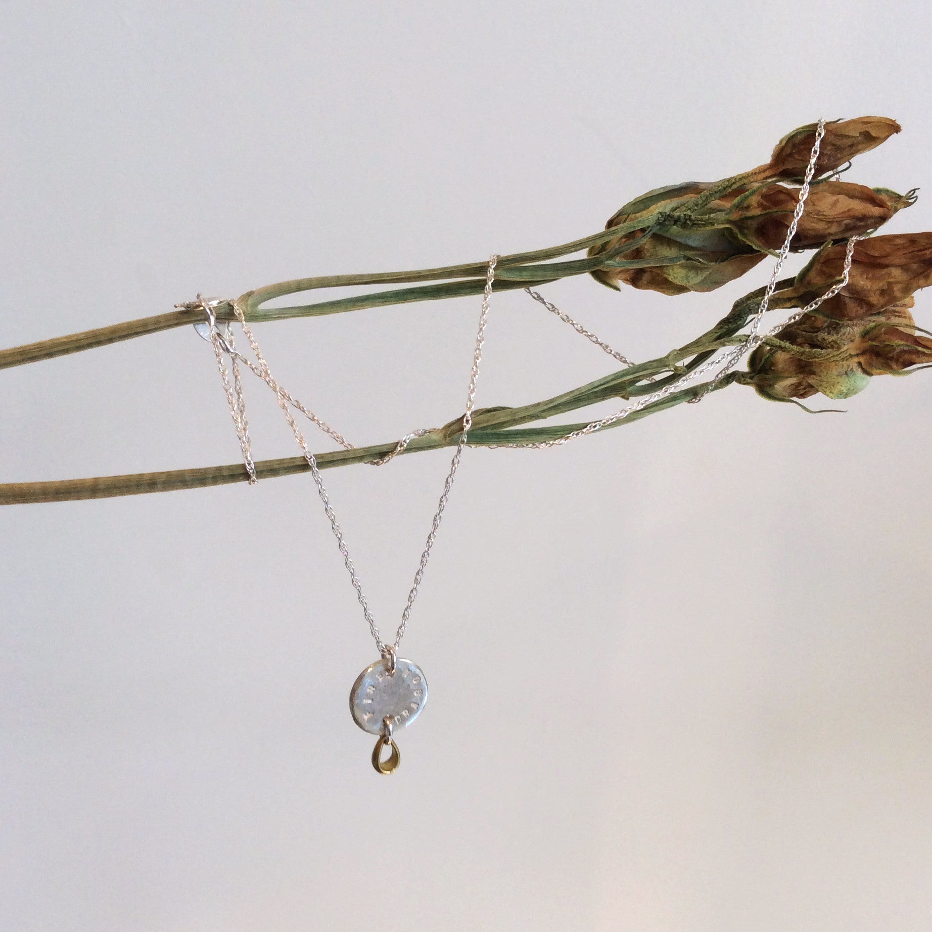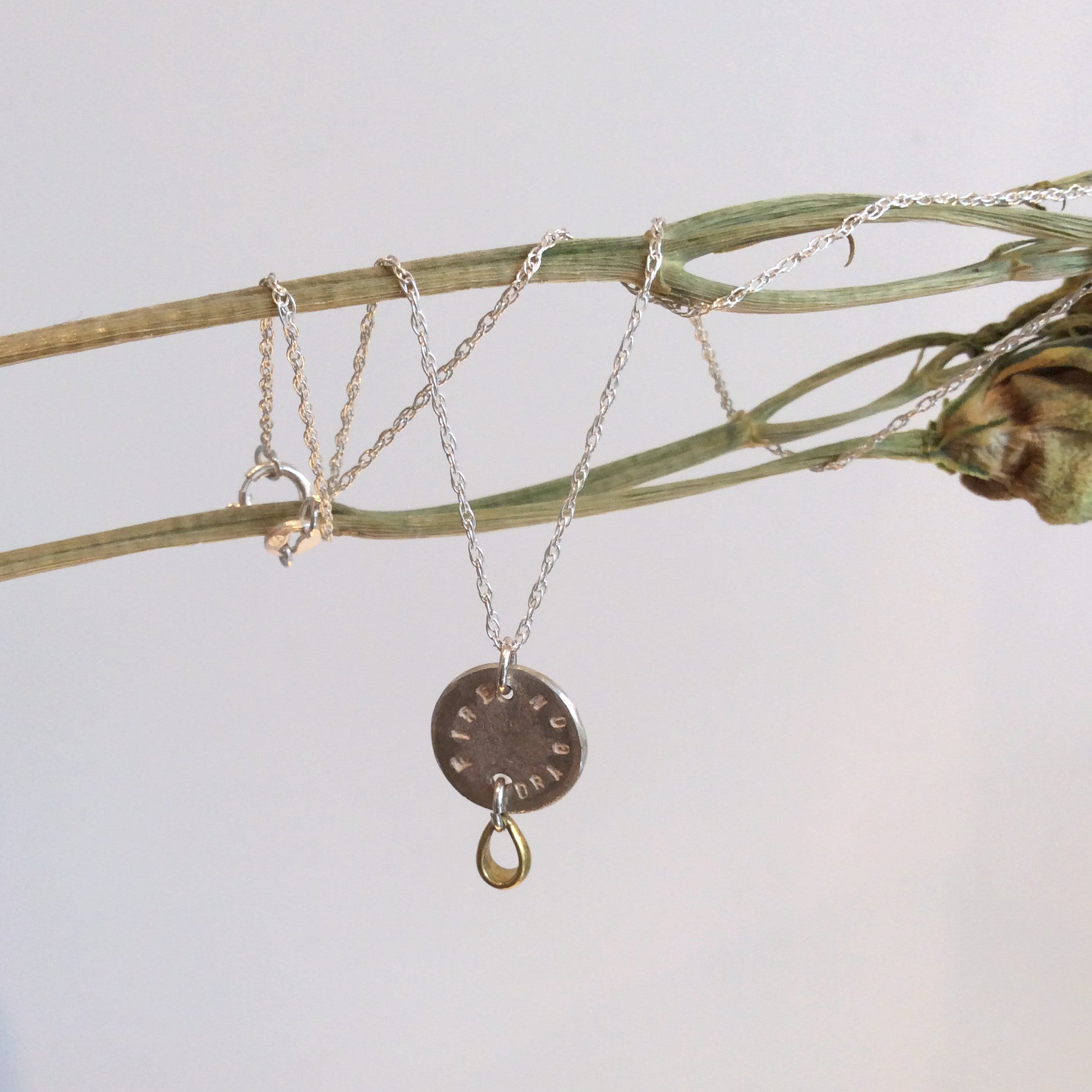 This is a simple textured silver chain with a round silver charm. It features the words 'FIRE' over 'DRAGON' engraved onto one side. This message is based on Chinese I Ching, which means great success in life. A one of a kind piece which pairs well with our selection of gold and silver necklaces available on our shop to purchase.