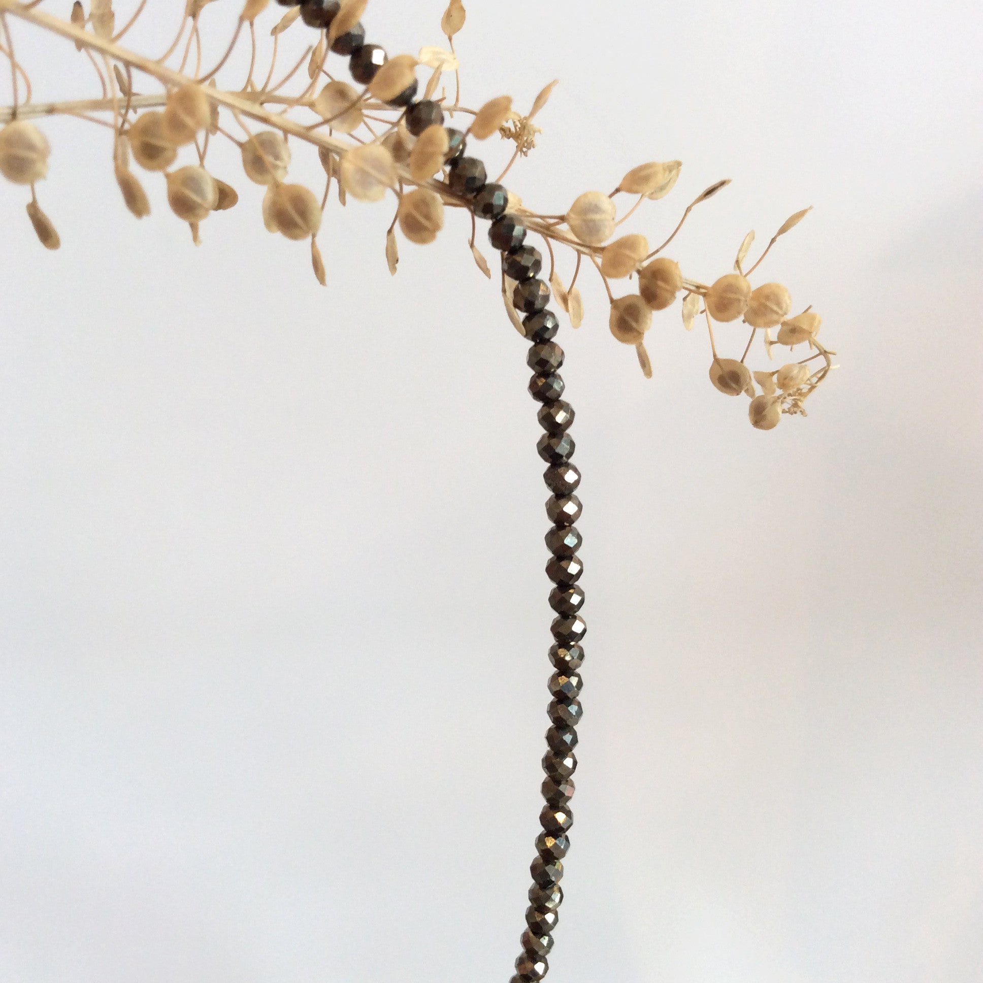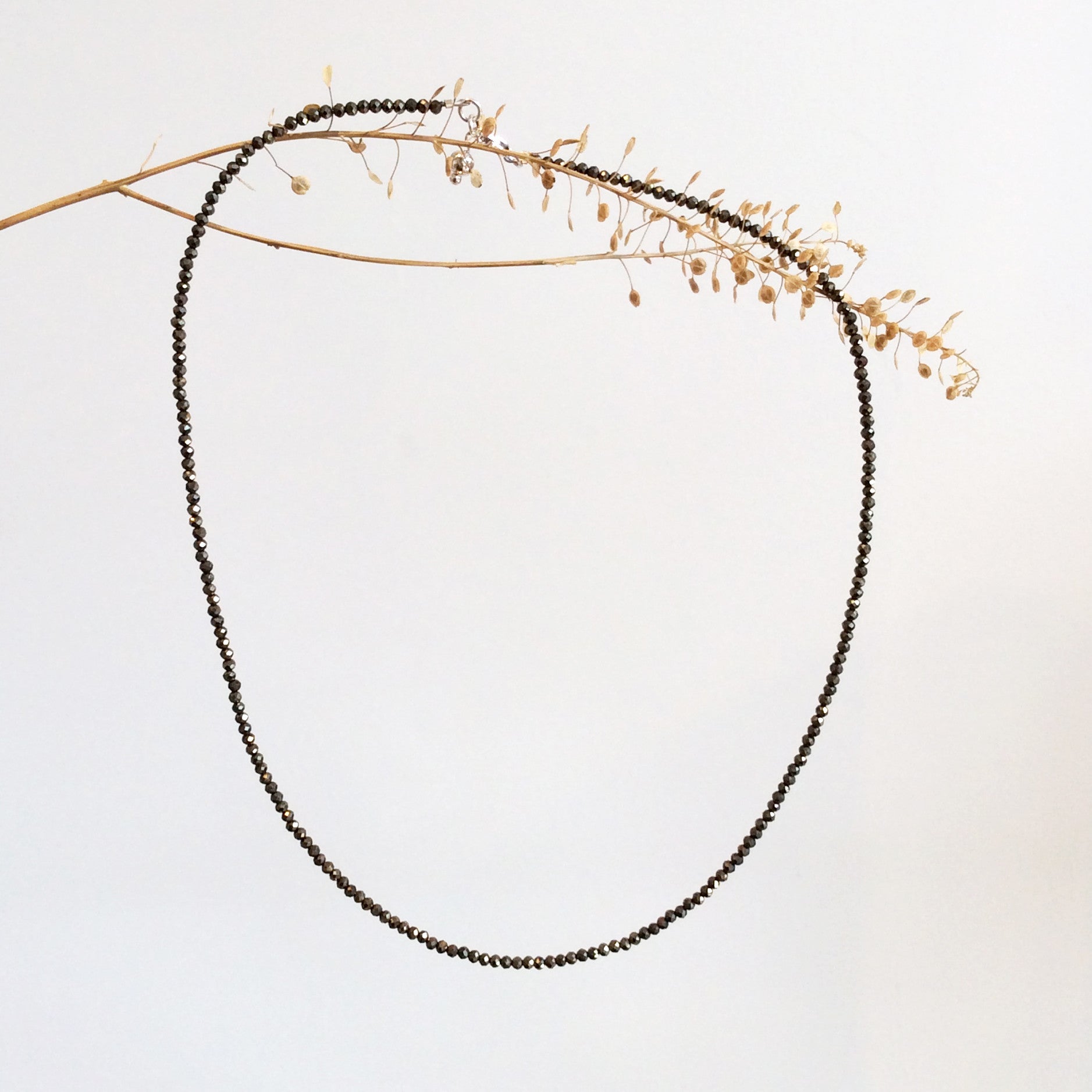 This delicate piece of jewellery features a string of faceted Pyrite gems which falls beautifully on the skin. Perfect as a layering piece or simply by itself for a statement and minimal look.