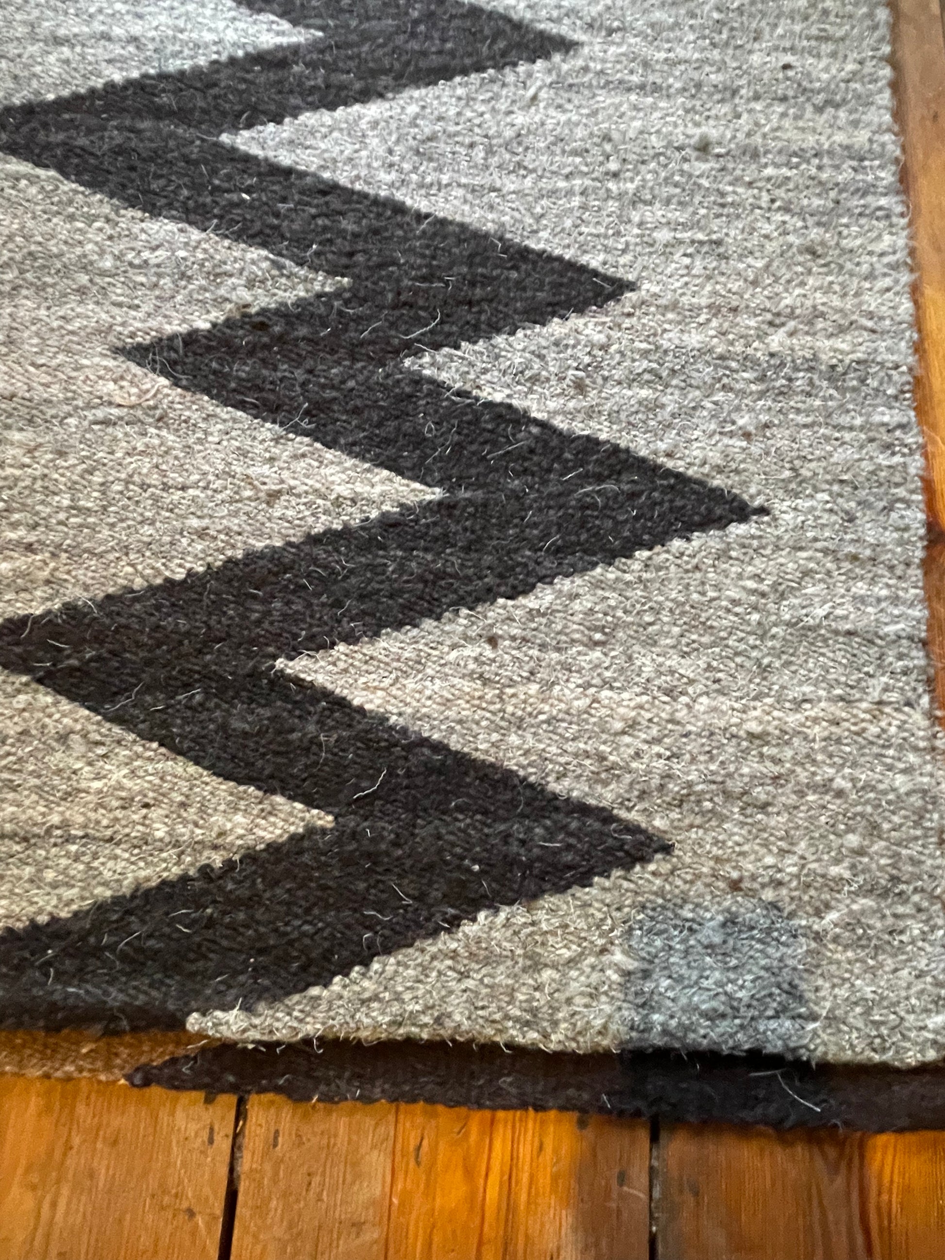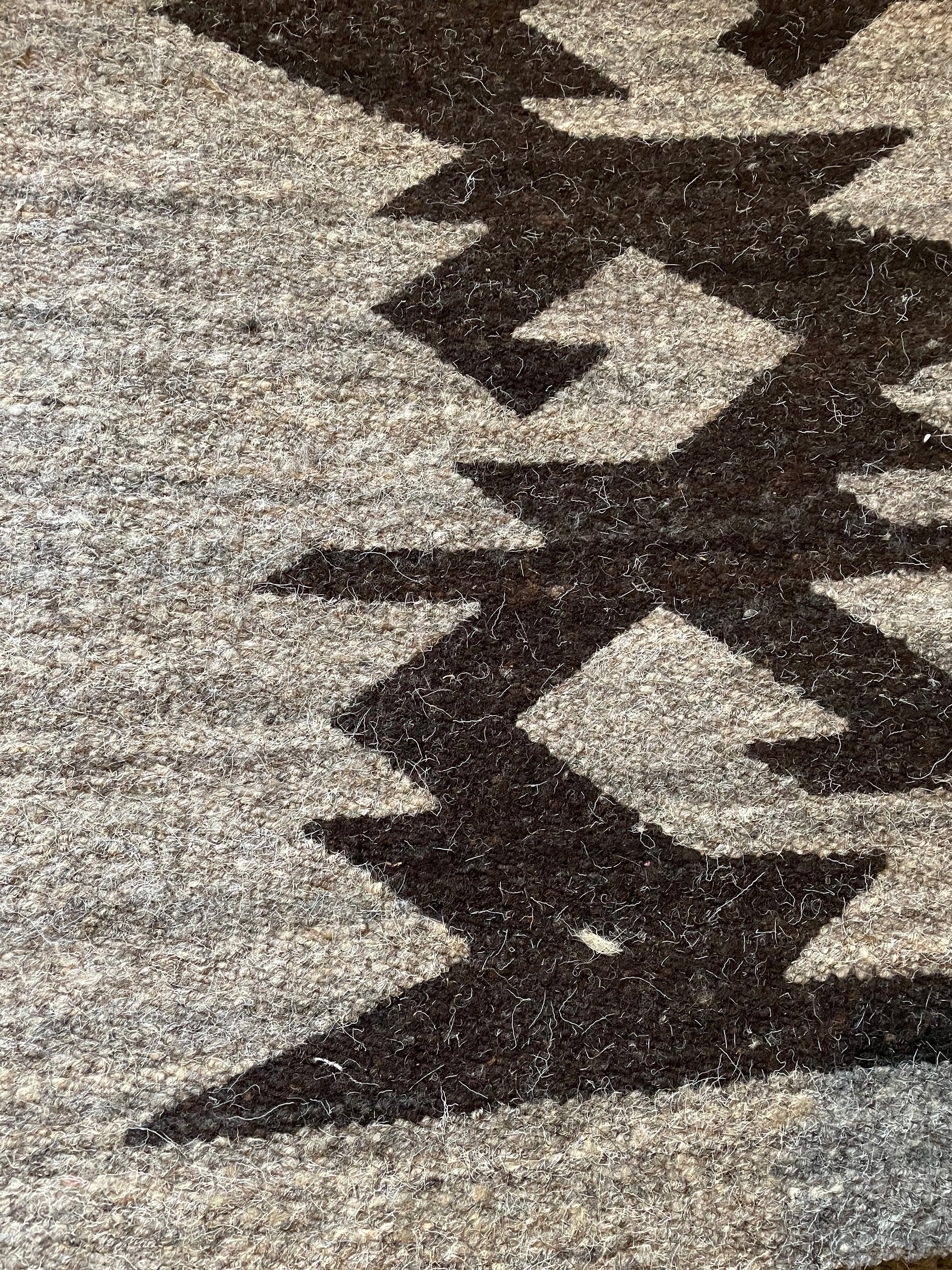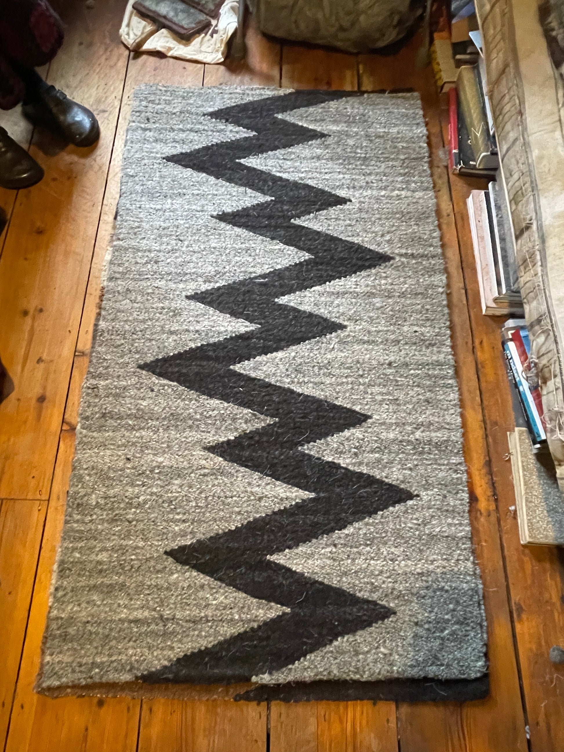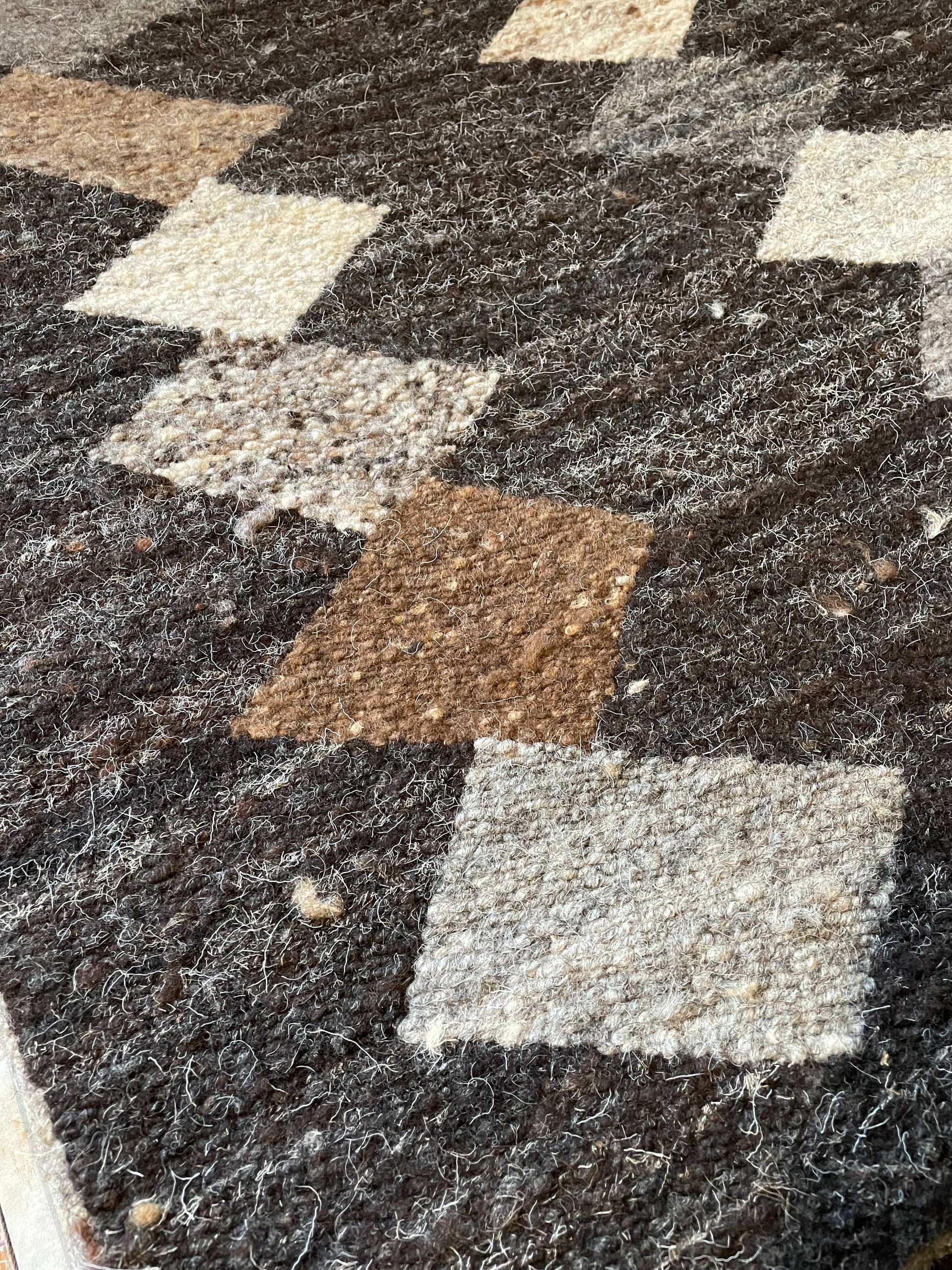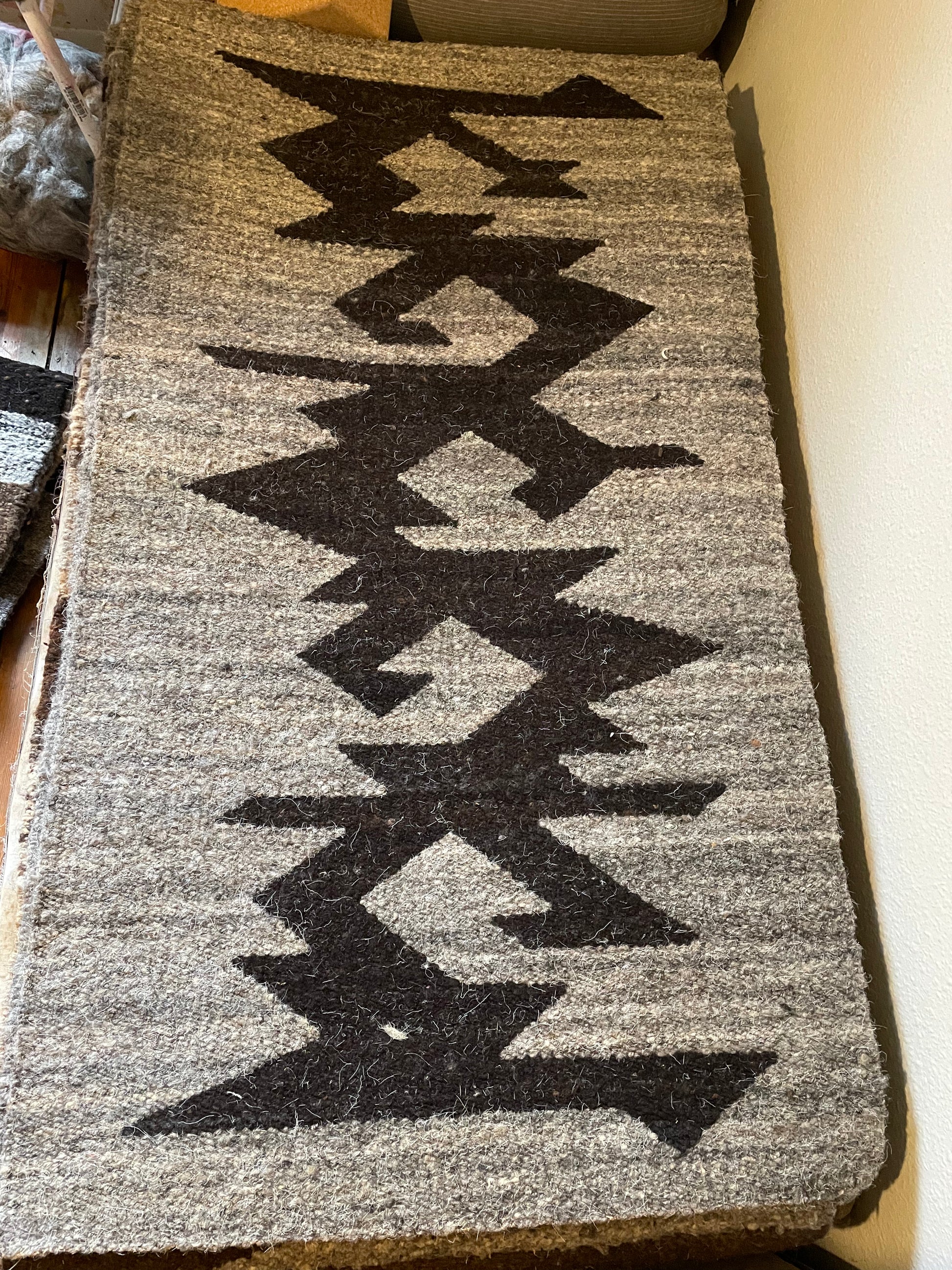 Utilising a rich and diverse palette of British breeds of wool, Rachel Scott’s rugs are all made from natural yarn that she spins from bundles of fleece on a wheel . Rachel uses undyed natural wool left to its own original colour creating entirely unique rugs; the fleeces are sourced from farms in the Berkshire and the Chilterns. She enjoys the restrictions on colour and pattern and keeping her work purposefully self-sufficient.