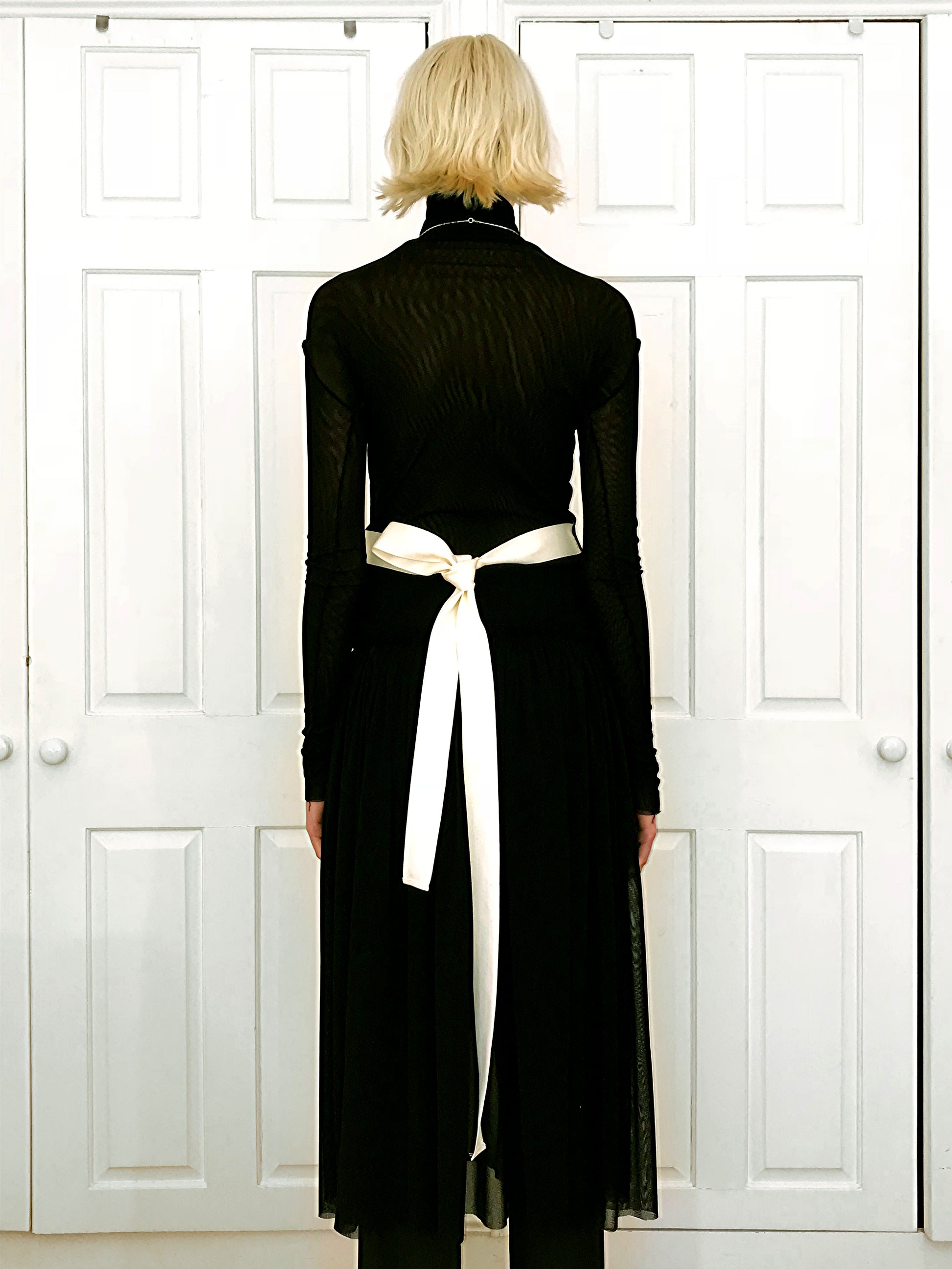 This is our Rosas Tulle Dress made from a lovely fabric for that soft flowing effect. It is a see through yet stretchy material so you can layer it up. It features a string detail where you can tie it up in the back or at the front.