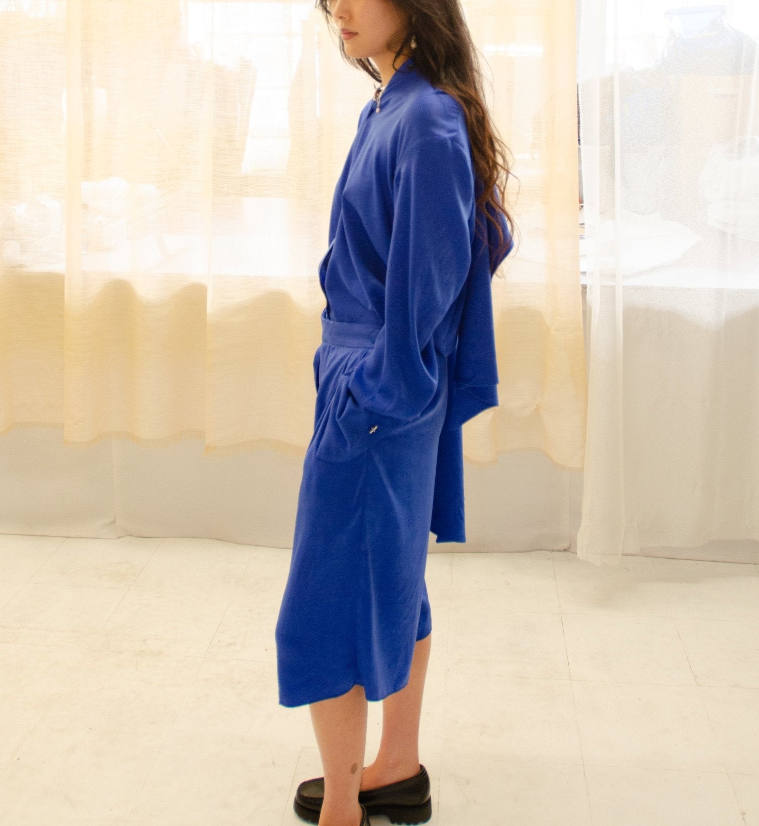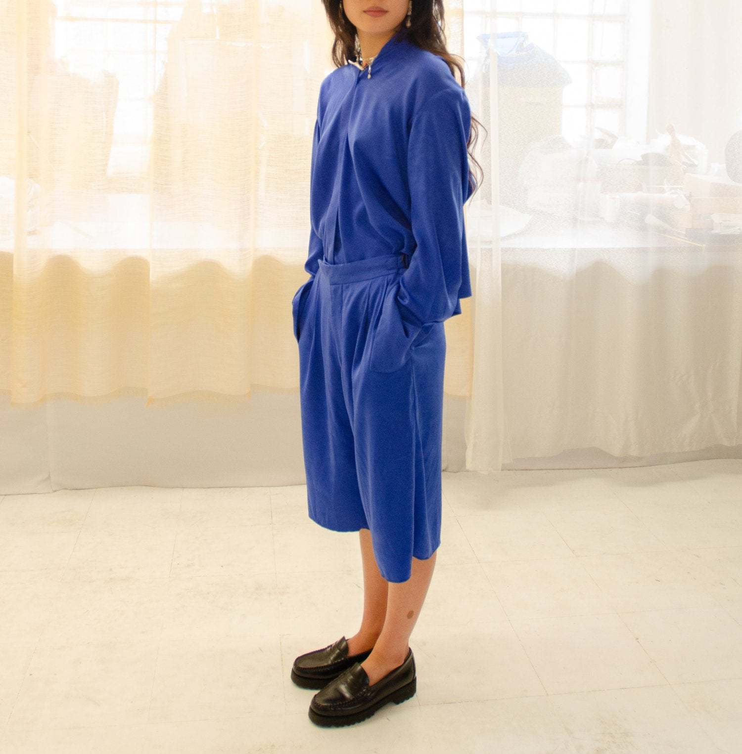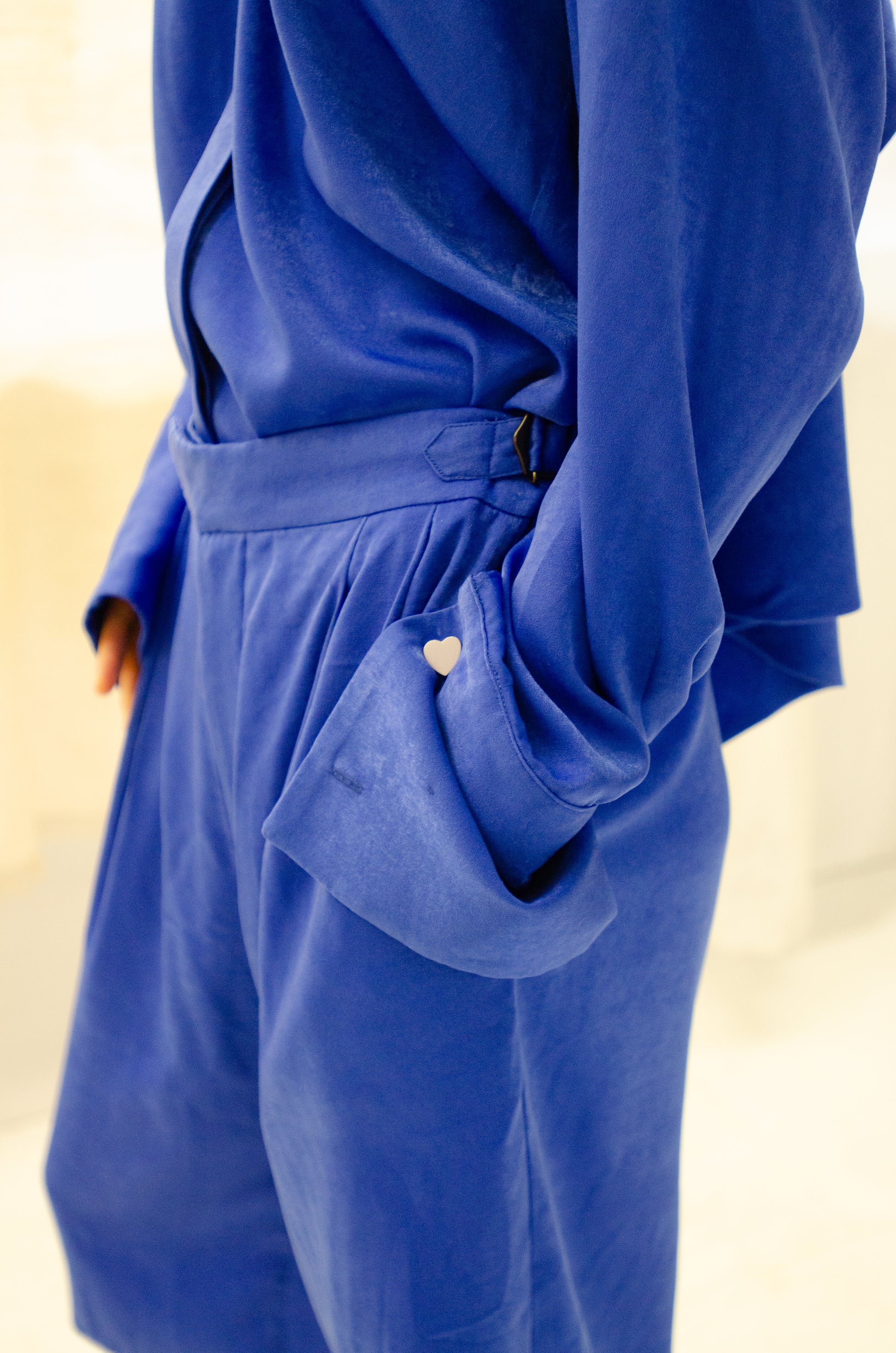 This SHIRT WORKSUIT w/mini scarf offers the best of both worlds with a tailored collarless shirt top and stylish suit trousers in one elegant piece. Elevate your wardrobe with this luxurious jumpsuit, perfect for the modern woman on the go.