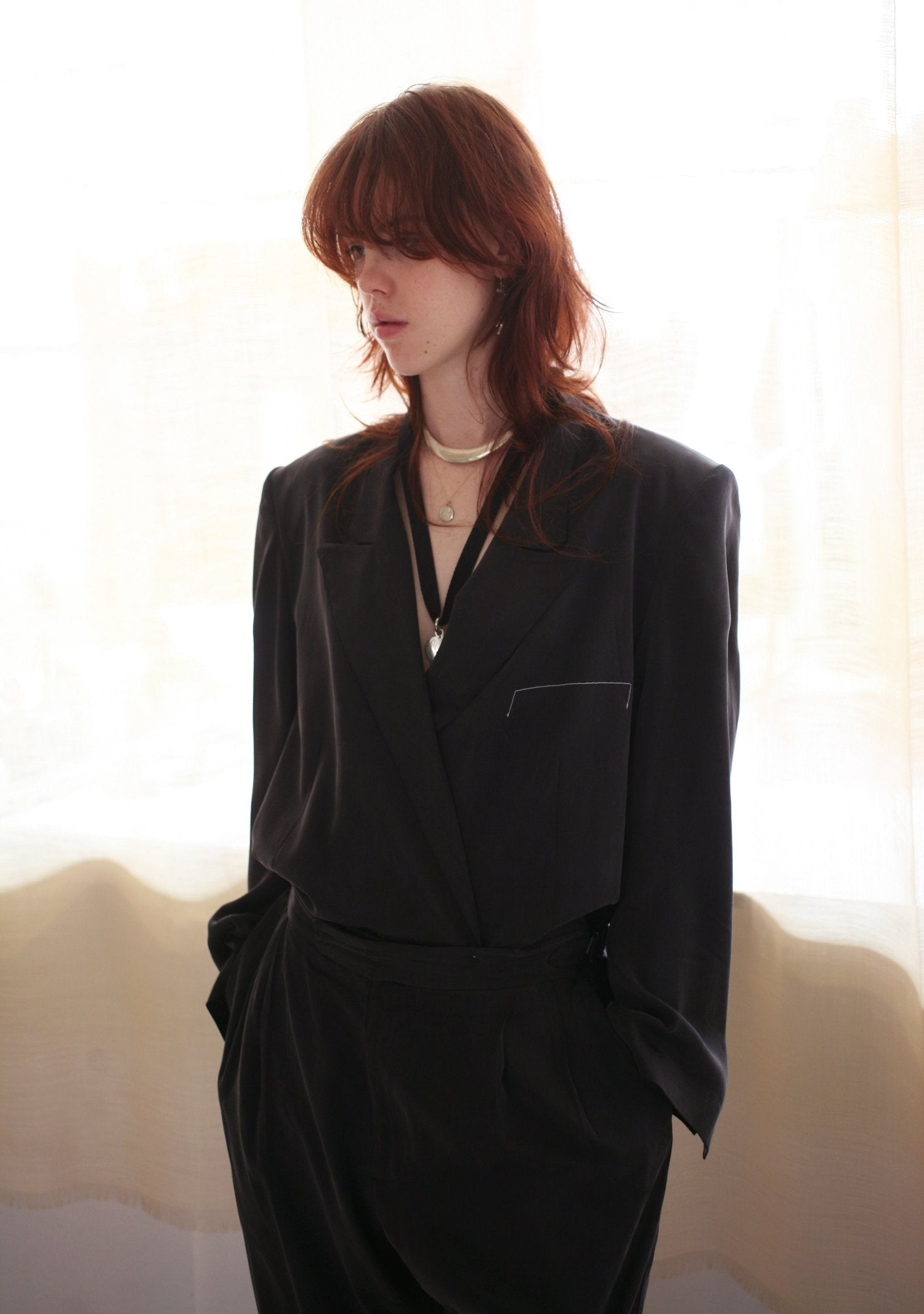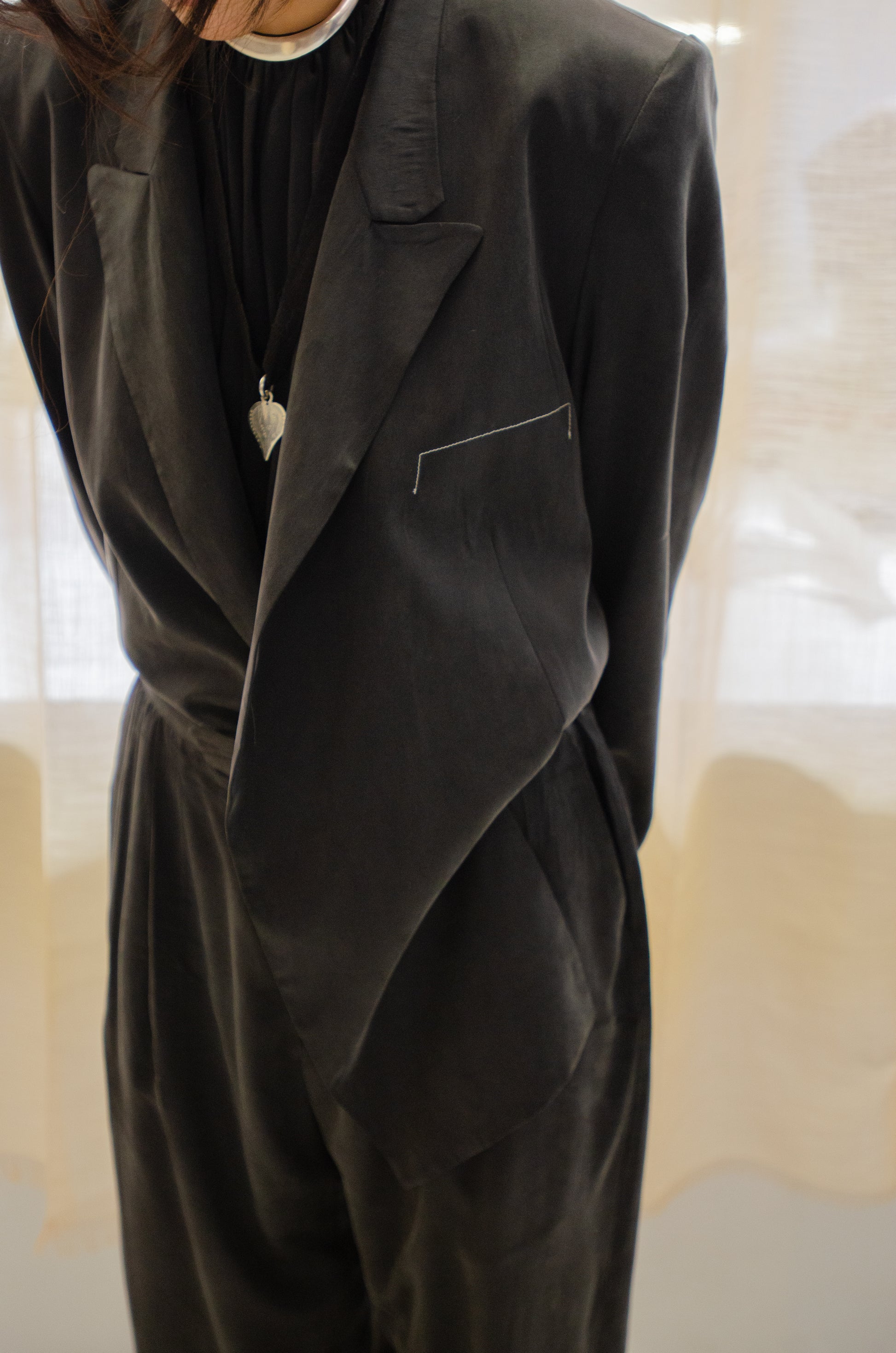 Introducing our new Tailored Work Suit (Jumpsuit), inspired by 80's men's tuxedo suit. Crafted with care, this piece offers a flattering silhouette and high-quality fabric for all-day wear. Transition seamlessly from day to night with this versatile jumpsuit. Available in Black & Dark brown in Italian tailoring wool.