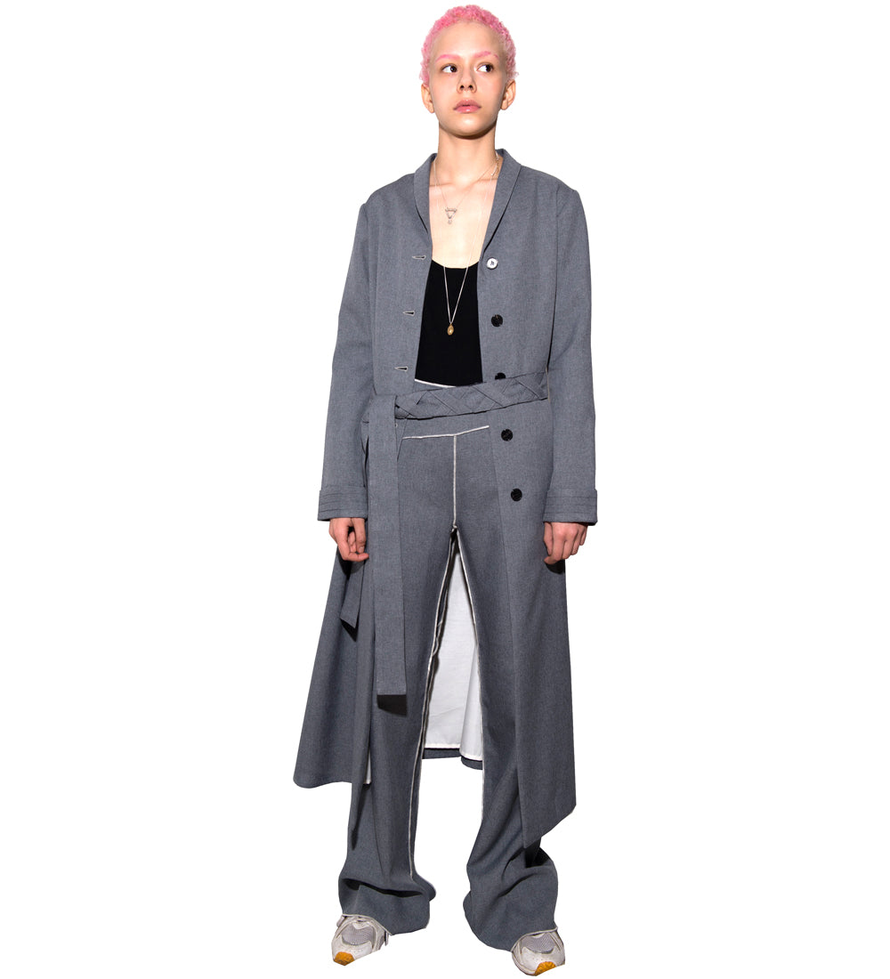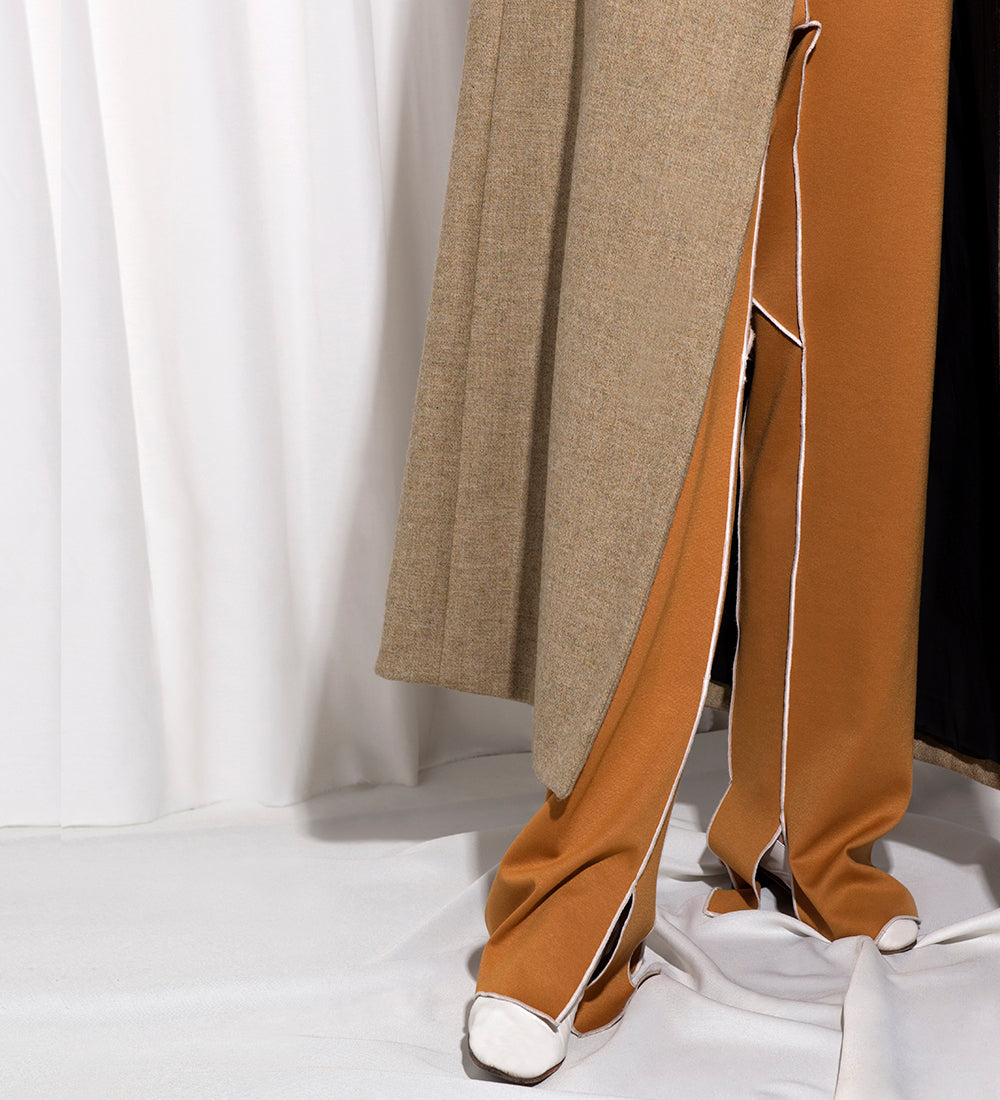 These trousers are fitted at the waist and hips. It features a side zip fastening. Designed with a straight wide leg silhouette for a flattering look in an exaggerated length. It has a waist yoke at both front and back. Ideal for the individual with an attention to detail.