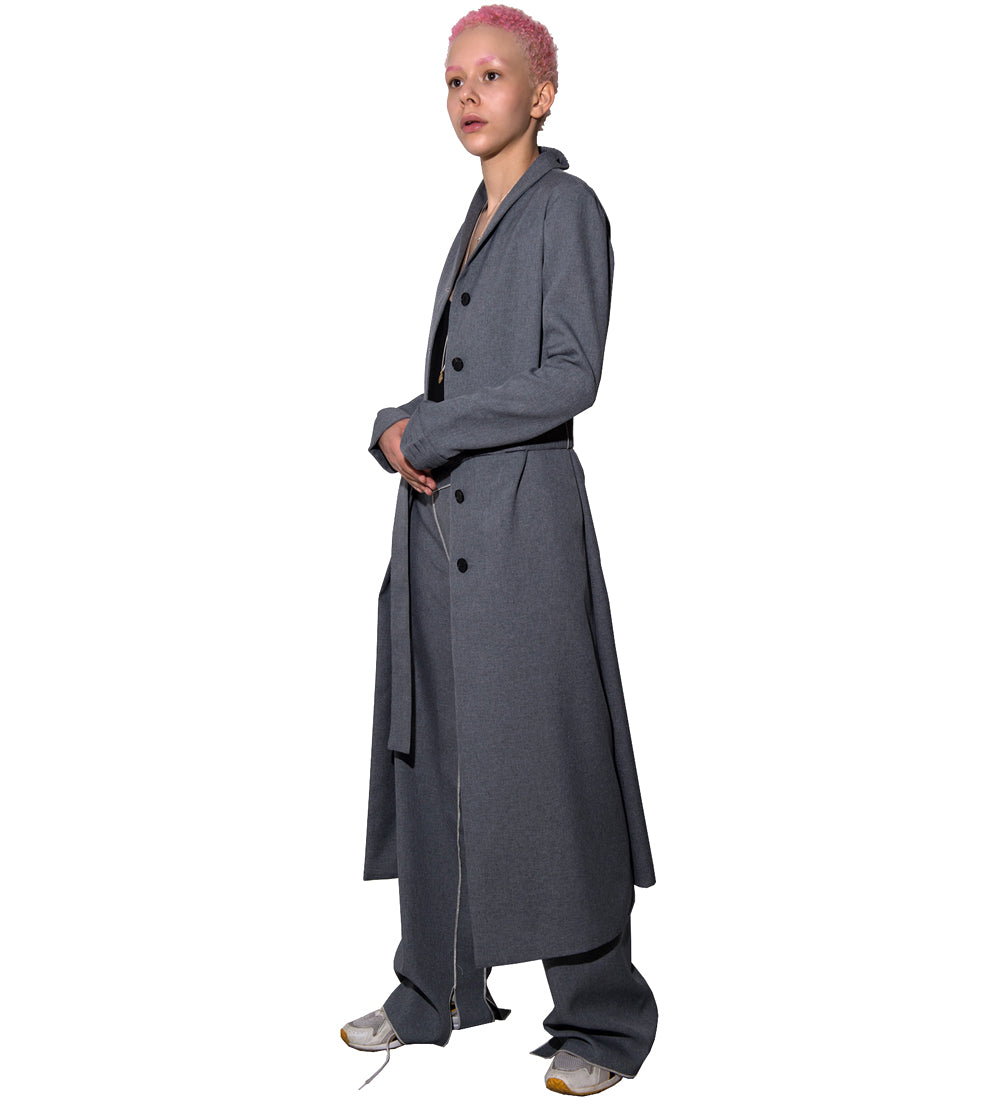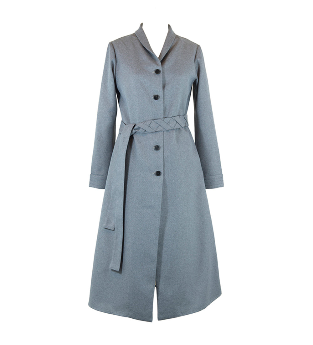 This coat is designed as an A-line fit with a narrow shawl collar. To wear this coat, simply tie the belt to one side or let it drape at the centre. A perfect transitional for fall for those warm and chilly days. You can also easily dress it up or down with a pair of heels or let it hand loosely for a relaxed look.